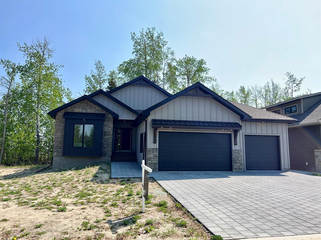 BUNGALOW CURRENTLY IN FINISHING STAGES BY HOMEDGE IN THE GATED MAINTENANCE FREE, ADULT COMMUNITY OF WILDWOOD - NESTLED IN TAYLOR ESTATES AND BACKING ONTO A TREE BUFFER. EXTERIOR FEATURES BEAUTIFUL HARDIE BOARD EXTERIOR WITH TIMBER ACCENTS, LARGE 3 CAR HEATED GARAGE, AND PAVING STONE DRIVEWAY. THE OPEN KITCHEN BOASTS A HUGE ISLAND WITH SEATING, QUARTZ COUNTERS, AND BOSCH PROFESSIONAL GRADE STAINLESS APPLIANCES INCLUDING 36" SLIDE IN DUAL FUEL RANGE, 36" FRIDGE/FREEZER, BUILT IN MICROWAVE, AND HOOD FAN INSERT. THE LARGE WALK IN BUTLER PANTRY HAS BUILT IN CABINETS, QUARTZ COUNTER SPACE AND OPEN SHELVING. THERE IS A NICE SIZE DINING NOOK WITH DOOR TO COVERED, MAINTENANCE-FREE DECK WHRE YOU CAN RELAX AND ENJOY THE VIEW OF THE TREES BEHIND. TIMBER BEAM ACCENTS, GORGEOUS FLOOR TO CEILING WINDOWS AND GAS FIREPLACE COMPLETE THE GREAT ROOM. THE 14'X14' PRIMARY SUITE HAS FLOOR TO CEILING WINDOWS TO THE BACK YARD, AND THE ENSUITE OFFERS DOUBLE SINKS AMPLE COUNTER SPACE AND STORAGE BELOW, FREE STANDING SOAKER TUB, CUSTOM WALK IN SHOWER, AND SPACIOUS WALK IN CLOSET WITH A CONVENIENT DOOR TO THE LAUNDRY ROOM! GARAGE ENTRY HAS CLOSET AND BENCH, AND DOOR TO LAUNDRY ROOM AS WELL. HIGH END CABINETRY AND FINISHING, HARDWOOD, CARPET AND TILE FLOORING THROUGHOUT THE MAIN FLOOR, OVERSIZED TRIPLE PANE WINDOWS WITH BLACK GRILL DETAIL, TIMBER BEAM ACCENTS. THIS IS A RARE OPPORTUNITY TO OWN A NEW HOMEDGE DESIGNED & BUILT PROPERTY WITHOUT HAVING TO GO THROUGH THE BUILD PROCESS. THERE IS NOTHING LIKE THIS PROPERTY AVAILABLE IN GRANDE PRAIRIE - UPSCALE LUXURY LIVING IN ADULT ORIENTED, MAINTENANCE-FREE, GATED COMMUNITY. MOVE IN READY - BOOK YOUR PRIVATE TOUR!
