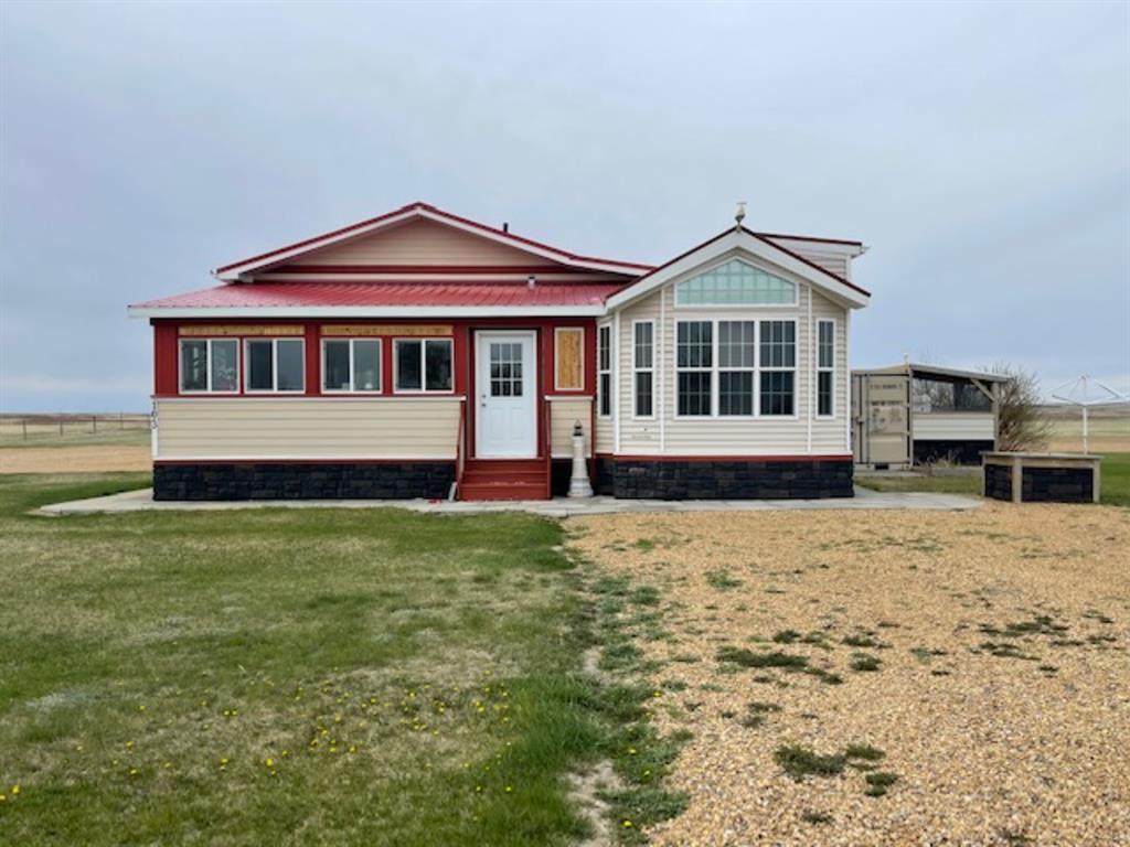 MOTIVATED TO SELL, QUICK POSSESSION!! Quiet country living in the hamlet of Richdale. Located only 15 minutes East of Hanna along highway 9. This opportunity to own a beautifully landscaped, 3 acre parcel could be yours. The updated park model home plus addition has 2 bedrooms, 2 bathrooms plus a loft area with 2 more bedrooms. The home is self sufficient in the event of power loss. There is a back up generator as well as battery operated fireplace. It includes 2 gas stoves as well as 2 refrigerators. The front room is a great spot to entertain or enjoy the many windows to watch the prairie sunsets. Furnishings included. There is plenty of storage on the property as it contains 2 40'X9'6 seacans (one has heat/AC/electricity run to it), 1 40'X8' seacan, 1 8'X8' seacan. One of the seacans is classified as a tornado shelter. There is also an older RV that is fully fenced for when you have company come and stay. The property is about 2/3 fenced with 6' chainlink, and 4' at the front. If you're looking to build your dream home, maybe this is a great option! You are able to live in the current home and build your new one. The Electric is all run underground, underground sewer, 1400 gallon septic tank, there is water run to the house and at the back of the property behind the house and the home has 360 linear feet of weeping tile. Enjoy this little piece of paradise!