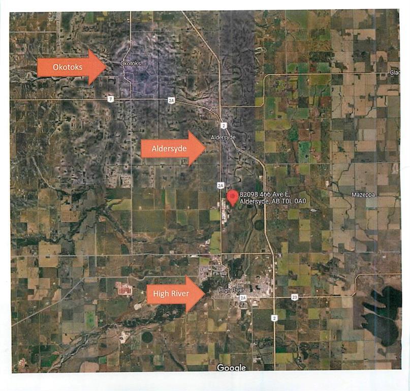12.1 Acres bare Land Zoned GI per Foothills County ; located adjacent to Cargill Foods and Abilds Industrial Park along the Aldersyde-High River Industrial Corridor off Highway 2A on 466 Ave. Zoned General Industry.
