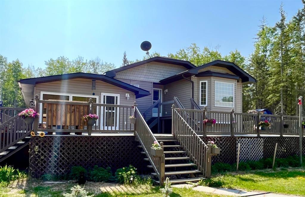 Gorgeous Country Home & Shop! File #4261 Quality Built 1670 sq ft country home has a huge wrap around deck overlooking your 5 acre property. Bright kitchen, with attached dining, includes plenty of cabinets and counter space, with lots of nice large windows! Large cozy living room includes a gas stove, for those chilly evenings! Home includes 3 bedrooms on main level, and a total of 3(4 piece baths) with an abundance of room! Fully developed basement with custom oak bar & large open family/ games room, which could partially be converted to another bedroom!!! Outside you will love the sun deck, sit out and enjoy the breathtaking sunsets after a long day! Enjoy the 48"x32' heated workshop with concrete floor and 16' walls! Most of all enjoy the space, freedom and serenity, on this gem of a property you could call HOME!!!! Located only minutes from town!$449,500.00