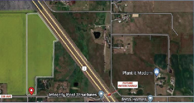 FUTURE INDUSTRIAL LAND located and visible along Highway 2 South of Calgary in new annexed land of East Okotoks. Future interchange on Highway 2 to be built at intersection to easy access. Located in the future North Point ASP. Possible uses include storage, trucking, construction, RV Storage, manufacturing. Great investment possibility. Additional land may be available in the area for investment or development.