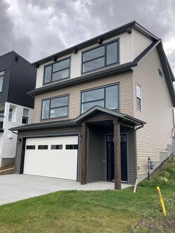 If you are looking for something different and want a brand new home in an affordable price point, this is the home for you. Drive into your attached heated garage and still have lots of space up front for lake toys, a workbench or sitting area. Upstairs is open floor plan with a WOW kitchen, 2 toned maple cabinets with soft close drawers & cabinets. White quartz countertops, black LG stainless Steel appliance pkg, undermount sink that looks into backyard, & black fixtures. 6 foot island with bi microwave, and extra cabinets on frontside. Wall pantry and decorative glass front cabinets. A feature wall in living room with an electric fireplace and 2 huge windows, vinyl plank flooring on this level. 2 pce powder room for guests. Upstairs to 2 good sized bedrooms, 4 pce bathroom, laundry room, and primary bedroom with large walk in closet, 3 pce ensuite with stand up shower. Upstairs has carpet. High efficient furnace with 2 stage fan, humidifier, infloor heat in garage, HRV, instant heat recovery system, water softener, & upgraded lighting package throughout are just a few of the energy efficient things in this home. Front yard will have sod. The west facing backyard has a 12'6x10 pressure treated wood deck for evening barbques, black dirt levelled to grade, lots of room for extra parking , RV, boat or just all your friends who want to hang out in your cool house at the lake. Located in a 30 zone half block to playground, close to schools, shopping and easy highway access. Immediate possession available. Taxes to be assessed.