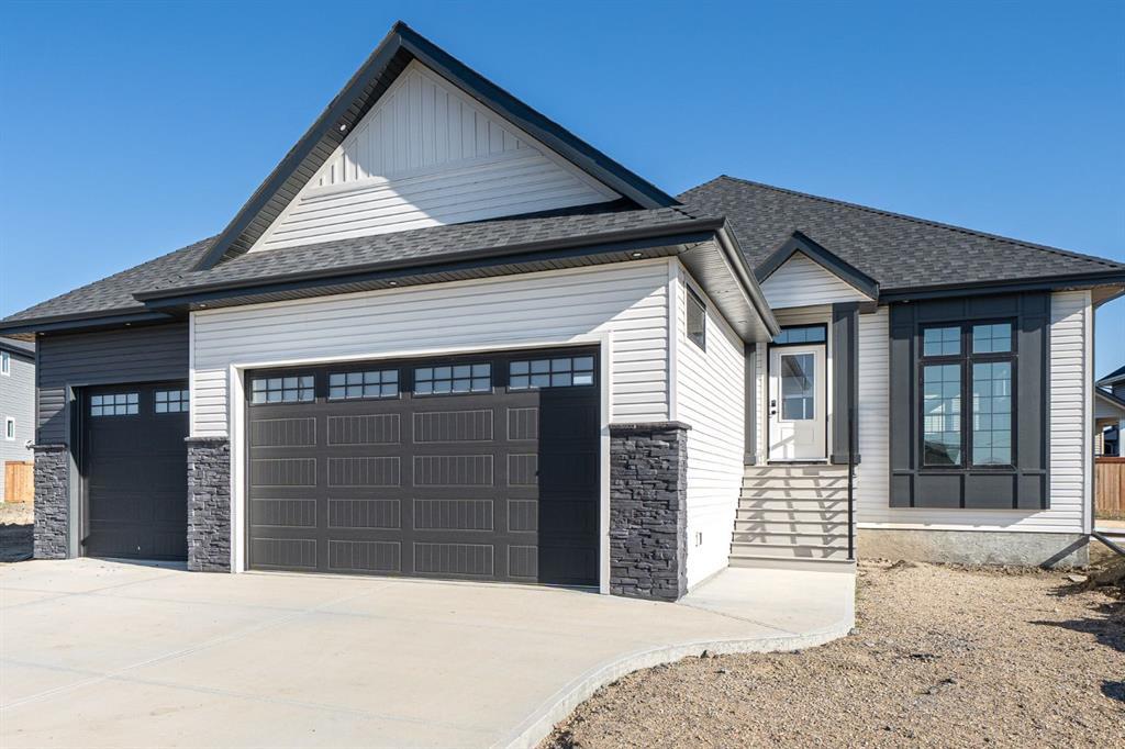 WELCOME HOME! A BRAND-NEW raised bungalow custom built in Lakeside. Upon entering the home this big bright bungalow offers a good-sized foyer. The kitchen boasts stylish yet timeless custom cabinets, gleaming quartz countertops, & tile backsplash. The living room features a coffered ceiling and oversized window. Off the dining area you will find a covered deck for year-round BBQing! Mudroom & laundry is located off the heated, insulated & drywalled triple garage. The primary bedroom features an ensuite with dual sinks, tile tub/shower & huge walk-in closet. Two more sizeable bedrooms, & 4 pc bath complete the main level. The fully developed bright & spacious lower level brings this home to over 2940SF of fully functional living space! Boasting above ground windows, the large rec room offers endless options for layouts. There are 2 more large bedrooms & 4 PC bath and a large utility room offering plenty of extra storage space. Triple glazed windows, 50 years warranty on shingles, quartz countertops throughout, surround sound speakers, 9' ceilings throughout, roughed in for A/C, natural gas BBQ hook up, finished deck & basement. This well thought out custom home is truly one of a kind. This home also comes with 10 year progressive new home warranty! One of the seller's is a licensed Realtor in the provinces of AB & SK.