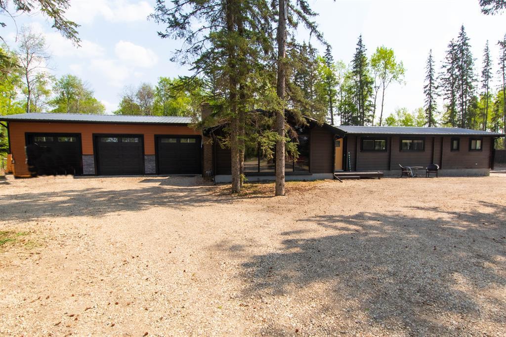 This beautiful fully renovated 2084 sq ft bungalow is only a couple minutes from town and sits on 3.7-acres of gorgeous land. This log home backs onto a river which makes it a unique and tranquil location. The treed surroundings offer natural beauty and privacy, creating a peaceful atmosphere. The home has had many desirable changes such as a new Septic System, new windows (most), doors, metal roof, plumbing, and electrical systems which ensure that the home is in excellent condition and ready for long-term living. The newer furnace is also a great addition, providing efficient heating throughout the home. The large living room with a wood fireplace is an inviting space to relax and entertain guests, while the brand new kitchen with granite countertops, center island, and gas stove provide spacious dining area with plenty of room for family and friends to gather and enjoy meals together. The master suite with a walk-in closet and bathroom with his/hers sinks and a tiled shower is a luxurious and comfortable space, while the second bedroom with a large closet and 3-piece ensuite also offers privacy and convenience. The third bedroom, full bathroom, and laundry room with storage complete the main level, providing ample space for family living. The basement with a huge rec/family room and wood fireplace, another bedroom, full bathroom, and storage provides additional living space and versatility. The huge 28’ x 40’ triple garage has radiant heat, epoxy floors with hot and cold taps, and a bay door to the rear of the garage making a convenient feature for accessing the property. Overall, this renovated bungalow log home is a fantastic property with many desirable features and a tranquil location.