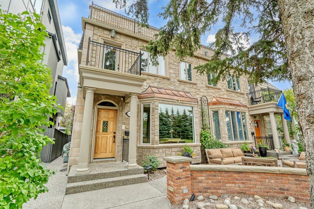 Location Location Location! A truly rare find and an incredible opportunity to live on one of Calgary’s most sought-after streets. Situated across from a beautiful green space and surrounded by parks and the Elbow River, this home offers outstanding views including those of the majestic mountains! Offering over 3000+ sq.ft. of total living space on 4 levels, this immaculate and stylish home has been extensively renovated using only the finest materials and workmanship, with no expense spared. The thoughtful nature of this home is a perfect fit for those looking for an awesome inner-city experience with all of the views, space, privacy and function imaginable. With a total of 3 bedrooms, 4 bathrooms, two family rooms, multiple large patios, air conditioning, 9' ceilings on main level and a triple garage this home truly ticks ALL of the boxes. The wonderfully open main floor offers an inviting foyer with great storage areas, an elegant & cozy living room with gas fireplace overlooking the park, limestone floors, a spacious and bright chef-inspired kitchen that includes high-end custom cabinetry, stunning Palomino quartz countertops, top-notch appliances including a Sub-Zero side by side fridge/freezer, 48" Thermador Professional range and matching hood, Bosch dishwasher and a large corner pantry. Open to the kitchen is a large dining area which leads to a large back deck and private backyard with fire pit, perfect for those who love to entertain family and friends outdoors. The front living room overlooks the private courtyard and green space making it a perfect place to relax after a busy day. The powder room is a true showstopper and features incredible custom walnut millwork. All of the doors in this home are solid maple and have Emtek hardware which is another example of superior workmanship found throughout the entire home. On the second level you will be captivated by the spacious master retreat with a spa-inspired ensuite equipped with Kohler, Grohe and Toto bathroom fixtures, a steam shower, soaker tub and absolutely gorgeous custom walk-in closet with built-in cabinetry. The third floor is truly exceptional and features a large bedroom with walk-in closet that would also make for a great home office, a 3 piece bath, a built-in kitchen (with bar fridge and dishwasher), a bright and inviting family room with a gas fireplace, pool table and expansive deck facing west showcasing spectacular mountain views. The basement offers a private gym, tons of storage space and a rare triple garage which holds three full-sized vehicles. This home is a perfect fit for those looking for a more lock-and-go lifestyle as it offers beautiful low maintenance landscaping and absolutely no condo fees. Only a 5-minute walk to trendy 4th Street and less than a minute to the river pathways. The home is a walk-in ready gem!