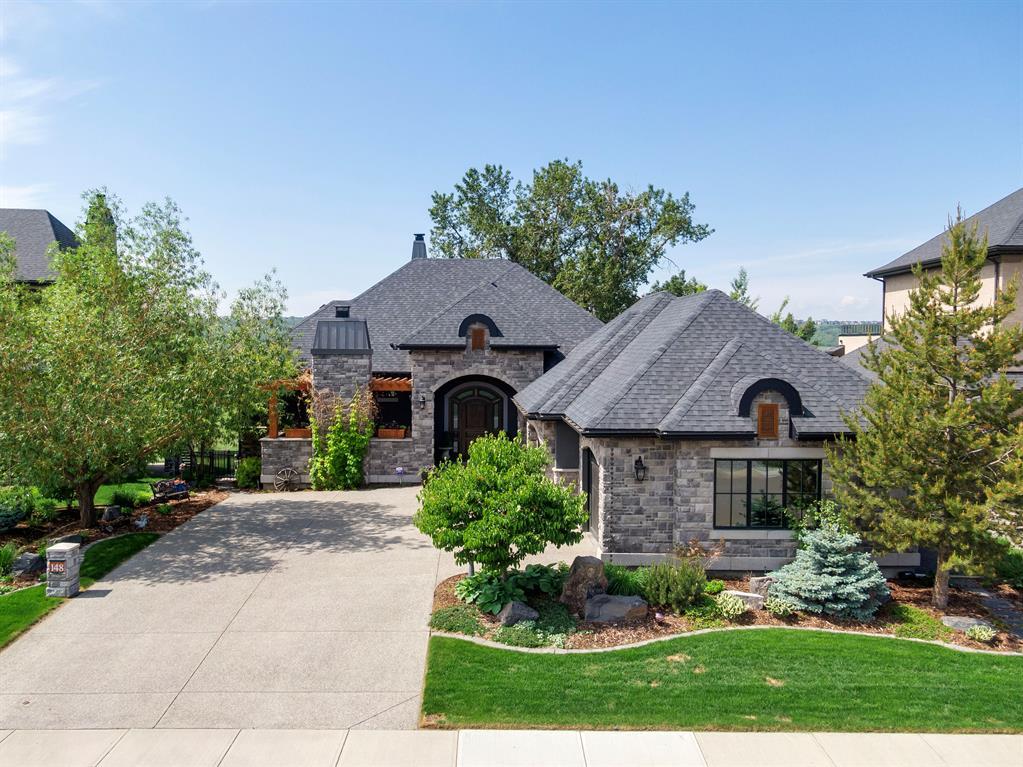 This opulent Albi estate home, nestled against the picturesque backdrop of the Bow River, exudes luxury and elegance from every angle. As you approach the property, you will be immediately struck by its breathtaking curb appeal, accentuated by its stone front exterior, exposed aggregate driveway and a private spa-inspired courtyard with a relaxing hot tub, cozy gas fireplace, and lovely pergola.