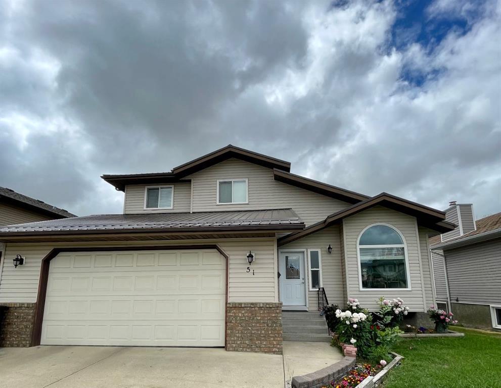 Check out the improvements to this beautiful move-in ready home located in the desirable Prairie Meadows neighborhood. The home is over 1800 square feet and includes 3 living spaces, 2 dining areas, 4 bedrooms and 4 Baths. The sunk-in living room looks onto to the raised dining area and both of these spaces boast open vaulted ceilings adding to the generous size of these rooms. The kitchen over looks the private yard and has garden doors leading to the deck which is partially covered for shelter on those rainy days. There is an abundance of cupboards and counter tops and a spacious eating area for the more casual meal times. The french doors leading to the family room offer privacy from the bustling kitchen which is great for when you are entertaining. This room has an inviting, warm natural gas fireplace and a garden door to the covered portion of the deck. The 2 piece bath on the main floor is shared with the main floor laundry that is tucked away in a convenient closet. Upstairs is host to the primary bedroom that has its own 4 piece bath and a large walk-in closet with built-in shelving for organizational ease. there are 2 additional bedrooms on the upper level along with the main 4 piece bath. Downstairs is the over sized games room that is spacious enough for a pool table and it has roughed in plumbing for a wet bar. The 4th bedroom and the 3 piece bath are also located along with the utility room with ample storage and a separate room for all of your storage needs. Improvements to the home home include all new vinyl windows, new exterior doors, metal roof, newer fence, vinyl plank flooring, fresh neutral paint, custom blinds and some updated light fixtures. In addition to the fully fenced private yard, across the street you will find access to the vast open space in the city park and playground. This home is sure to satisfy a buyers needs for what they want in a home. Call today to book a time to view this great property and GET MOVING IN THE RIGHT DIRECTION!