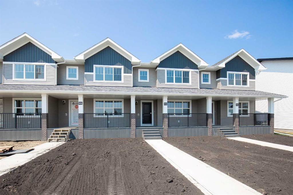 This brand new Larkaun Homes townhouse could be your next home! You will appreciate the upgrades throughout this 3 bedroom, 2 bathroom two storey. The curb appeal is accented by the covered front veranda. The entryway greets you to the living room that is flooded with natural light through the large front window. Ceiling height kitchen cabinets are accented by crown mouldings, full tile decorative backsplash, a large island eating bar with pendant lighting above, quartz countertops & a corner pantry. There is an oversized window overlooking the backyard from the dining room. The large back entryway is very functional with space to hang your coats & store your footwear. Follow the wrought iron railings upstairs to the 3 bedrooms. The king sized primary bedroom has a walk in closet. 4 pce bath has an extended vanity with drawers for storage & a separate water closet. There is an upper floor laundry room for your convenience. Don’t worry about the extra cost for landscaping, these townhouses come complete with sod & fence so that you can just move in and start enjoying your new home! The undeveloped basement has rough in plumbing for a future bathroom, a high efficient furnace & an electric hot water tank. A new home buyer program with the Town of Penhold is in effect which means individuals purchasing a newly constructed home (never been lived in home) in Penhold can apply for the program and it is a municipal tax reduction of 50% the first year, and 25% the second year they own the home. New RPR provided. Buyer Legal fees included (when you use Larkaun's lawyer).