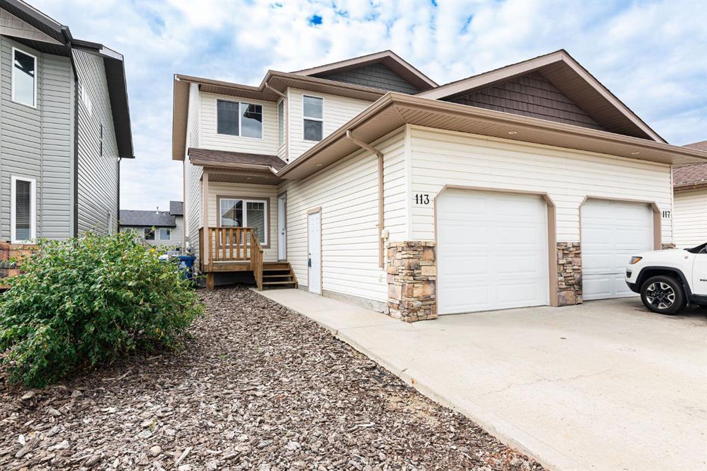 Welcome to the perfect home in the heart of Blackfalds when searching for a first time home or downsizing or looking for an investment property! Nestled in a peaceful neighborhood, this exceptional 3 bedroom/2 bath end unit condo is the perfect blend of comfort and style. Boasting an open design and a host of delightful features, this property is truly a gem waiting to be discovered. Step inside and be greeted by the warm ambiance of the three-way fireplace that graces the living area, creating a cozy atmosphere for those chilly evenings. The spacious layout seamlessly connects the living room, dining area, and kitchen, making entertaining a breeze. With abundant natural light cascading through the large windows, you'll always feel energized and refreshed.The well appointed kitchen is a chef's delight, complete with sleek countertops, ample storage, and all the appliances, making cooking a pleasure. Whether it's preparing gourmet meals or whipping up quick snacks, this kitchen has it all. Indulge in relaxation and tranquility on your very own south-facing deck, offering breathtaking views of the surrounding landscape. Enjoy a morning coffee on your back deck, or host gatherings with loved ones as you watch the sunset on the horizon. Its location is also unbeatable! Conveniently situated near the Abbey Center and Blackfalds Recreation Centre, you'll have access to a plethora of activities, including fitness, swimming, and community events. With schools, parks, and shopping centers just a stone's throw away, your daily needs are well within reach.