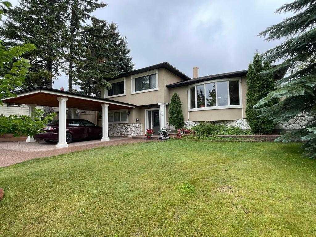 Fabulous, curb appeal 4 levels split located on an escalated huge pie shape lot (8188 sqft) with view of downtown in the prestigious area--Collingwood. Tons of features with upgrades /extension 10 years ago with all permits in this outstanding house--- front covered carport with extra wide driveway, ceramic tile flooring in a large entrance foyer that leading directly to the back door. Third level (above ground) , offers den/office, 2 pce bathroom, gleaming hardwood floor in a large family room with wet bar , first furnace & laundry room. This level has direct access to the covered patio at the back , double detached oversized & heated garage, workshop, RV parking & a private huge fenced east facing treed backyard. Open concept --bright west facing living room with bow window & wood burning fireplace, gourmet kitchen with skylight, granite counter-tops and backsplash, modern appliances, large duradeck off dining room, private sunroom & outdoor fireplace for social gathering. Upper level --primary bedroom comes with luxurious 5 pce ensuite bathroom, jetted tub, steam shower, walk in closet & Juliette balcony. Upgraded main bathroom has skylight, quality fixtures- jetted tub & steam shower. All bedrooms are good sized. The lower level has been set up for the self-contained illegal bachelor suite for teens, elderly parents or nanny, with separate entrance, second set of washer /dryer , & the private parking , this suite can be used as a mortgage helper . Second furnace replaced on Nov, 2019, electrical panel (2013) & shingles (2010). Close to all amenities, short walk to schools, bus stop, & the green space, bike path/Nose hill Park. Excellent value in this well-kept home on this location.