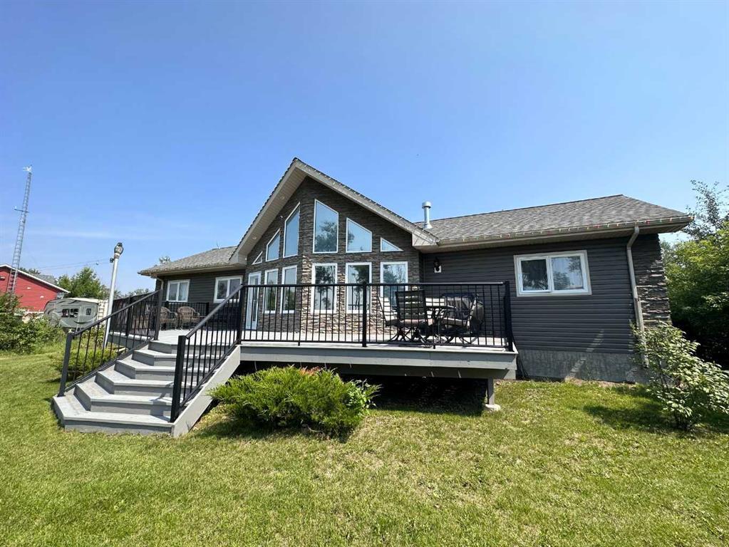 MYSTIC BEACH LAKEFRONT 1605 SqFt 6 bedroom home with beautiful sandy beach on .93 acre lot. This is a perfect year round home or second home away from home. Wide open design in the main gathering area and perfect for big crowds and family gatherings. You'll never get tired of the year round sunsets from the kitchen dining living room and most of the bedrooms. The master suite features dual his and hers walk-in closets and a private ensuite with separate shower, soaker tub and beautiful custom vanity, Two more bedrooms and two more bathrooms plus main floor laundry complete the rest of the main floor of this lakeside beauty. The basement is newly finished newly finished and features a massive family room with new vinyl plank and room for a TV area, games or pool table or whatever your hobbies are. There are 3 additional bedrooms plenty of storage and a roughed in bathroom ready for developing. The lot is an impressive 100 x 400 dimension, gently sloping to the lake and with the most beautiful clean sand beach. Live here or make this your year round getaway on one of Alberta's best fishing and recreation lakes just two hours South of Fort McMurray and 2.5 hours Northeast of Edmonton.