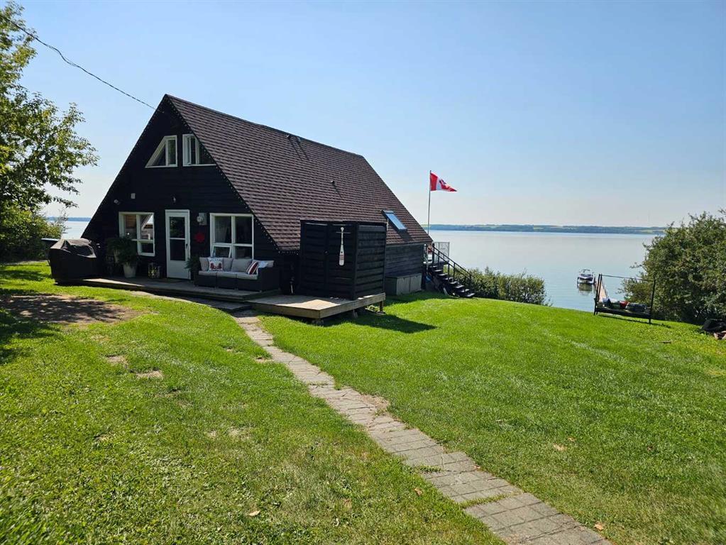 BEST lot in Sunbreaker Cove on Sylvan Lake! 130' of lake front with gradual slope to the water's edge perfect for waterslides in the summer and sledding hill in the winter! Just high enough to have a great undisrupted view but not a hike to the house!. Many updates have been done, laminate flooring, very nice granite countertops The house comes furnished with many extras! 1 bedroom on the main with Full bathroom, 2 more bedrooms and a 2pc bath up. Large kitchen space with a great open concept that flows from kitchen to dining to living with excellent views of the lake. Enjoy life on the massive patio with a huge sectional for all the family to enjoy. Park your boat out front with 180 feet of dock included A pie shaped lot with loads of parking, room for all the family, boats, RVs and toys.