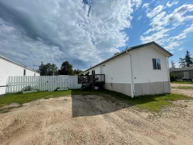This 2007 built modular home has an open floor plan that holds a kitchen, dining area, living room, 1 bedroom with a 3pc ensuite bathroom at one end, and 2 more bedrooms and a 4pc bathroom at the other end of the trailer. The hot water tank was just replaced last year. Off the kitchen, there is a large glass patio door that leads outside to the 8 x 18 deck. The yard is fully fenced with lots of room! This is a great starter home or investment property as it is currently rented for $1,600 per month!