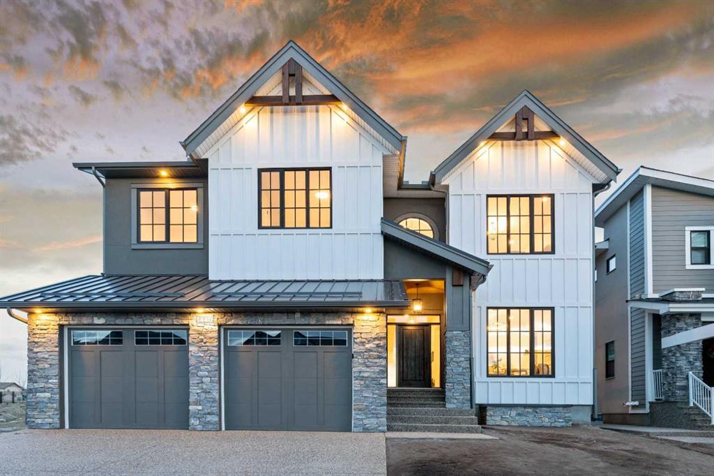 Welcome to this luxurious custom built home located in the most desirable community of Coopers Crossing, close to schools, shopping complex and major roadways. The exquisite exterior work with board & batten siding, metal roofing on garage & entry way, Fir beams and natural stone accents adds a touch of beauty and sets the stage for the exceptional work that awaits inside. The well thought out plan separates the flex room and powder room at the front from the living and kitchen. The open concept plan on the main floor features 10’ ceiling, engineered hardwood flooring, a spacious flex room with endless possibilities, living area with custom wood work and gas fire place. The GOURMET kitchen consists of a large island w/ storage cabinets at the back as well, barn sink, full height custom cabinets, quartz counter tops & backsplash, walk-through pantry, high-end stainless steel appliances and spacious nook area leading to a covered deck. Mudroom finished with custom cabinetry, bench and hooks for your convenience. Maple wood stained staircase with glass leads to a well planned second floor with 9’ ceiling, large bonus room with built in TV unit, 3 generously sized bedrooms in addition to the primary bedroom. Two bedrooms have their own connecting bathrooms and all have custom shelves in the closets and upstairs laundry with floor drain, sink, quartz countertop for ironing & upper cabinets. The luxurious primary bedroom features tray ceiling, 5 pc spa inspired ensuite with infloor heat, STEAM shower with jetted body sprays, hand held & a rain shower and large walk in closet with custom shelves and drawers. This house offers custom woodwork, sophisticated lighting fixtures, quality faucets and integrated speakers that span across the entire home. The basement is fully finished with large rec room for all your entertainment needs, wet bar, large bedroom and a 3 pc bathroom. Large windows and high ceilings throughout the house fill the space with ample natural light. Oversize heated triple garage (triple tandem) offers plenty of covered parking space( possibility of putting a lift as well) and includes textured ceiling, painted walls, speakers roughed in and upgraded garage doors. This ALL-INCLUSIVE home is a MUST see.