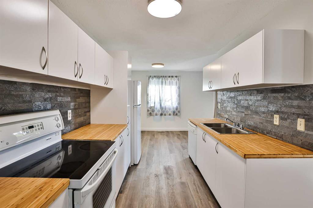 NEWLY RENOVATED! This freshly renovated condo is perfect for University students (or an investor), located within minutes of the University of Lethbridge and all the amenities needed such as groceries, pharmacy, dentist, and restaurants. This 2 bedroom condo has been updated from top to bottom and feels super fresh and modern. The renovation included new paint, new white kitchen with wood countertops and fresh backsplash, new laminate flooring throughout with new carpet on the stairs, new vanity, new doors and moldings, as well as a brand new furnace and new washer & dryer. The main floor has the living room, dining room , and kitchen , and the lower level offers 2 bedrooms, laundry, and a 4 piece bathroom, for a total finished living space of 1017 sq ft. The colors are bright and modern and the perfect backdrop for your decorating. This condo is available immediately, stop renting and call your favorite realtor today to view.
