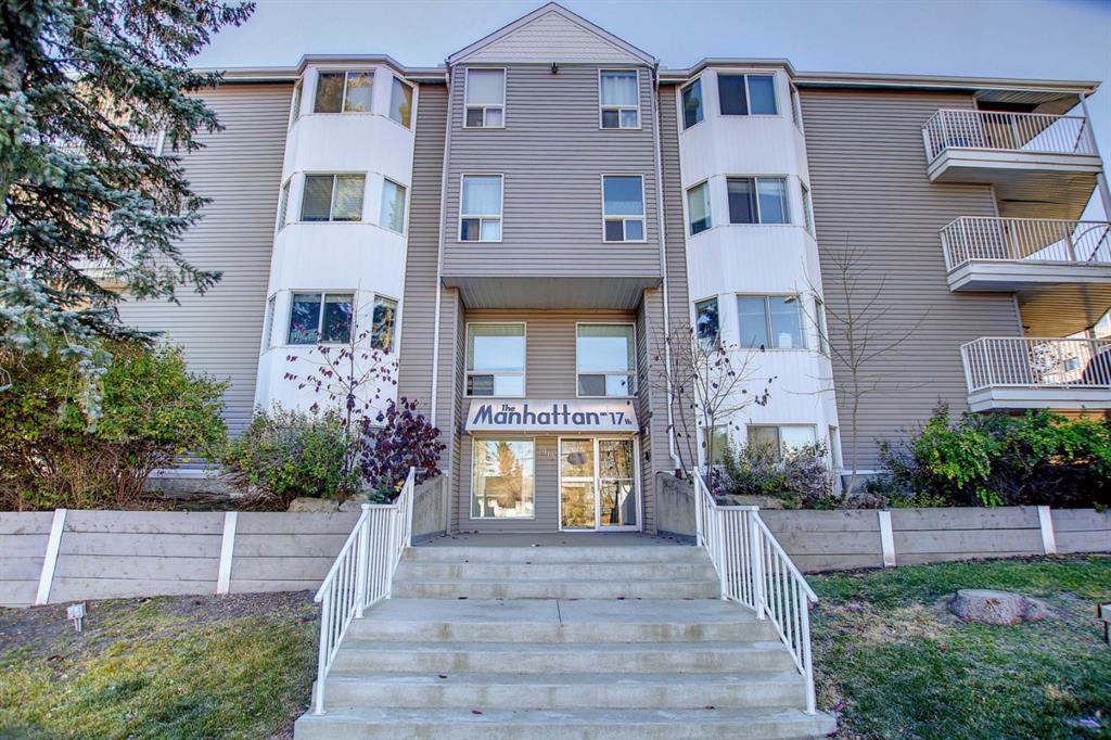 (The Apartment is vacant now and the price has been reduced ) live in this sought-after location in the neighborhood of Bankview just minutes from Downtown Calgary and it is only under the 9-minute drive to the University of Calgary and 5 minutes to Mount Royal University and all other amenities. THE MANHATTAN This amazing unit has an unbelievable east view from the Condo. Enjoy the summer BBQs in one of the most extensive spacious patios, with plenty of room for gardening, furniture, etc. This fabulous layout features a large open concept bost with two large bedrooms, Just minutes to a variety of public transportation, and steps from the famous and trendy 17th Avenue shops, restaurants, and nightlife. This unit has been well maintained and is move-in ready. The unit's interior was recently redone with newer paint, tile, etc. Kitchen with maple cabinets and three good appliances. Large living room with ample room for dining table. Ensuite laundry and storage. It's a good building and a good unit. All this plus secure underground parking and this is a pet-friendly building. Value-packed. THIS UNIT IS ON THE MAIN LEVEL AND NO NEED FOR AN ELEVATOR. SHOWS GREAT.