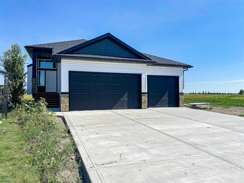 Amazing NEW HOME!!! On a large pie shaped lot. This home features 1300sq ft and triple car garage that measures 31’ x 24’ (one side is 25’) make it great for those extra vehicles you have acquired. The location of this home in the Town of Bowden which is situated between City of Red Deer (25 mins) to the North and Calgary (50 mins) to the South. Home features a nice open concept with living room, dining room, and kitchen with nice sized island and spacious pantry. There is a spacious deck with patio door off the dining area. Other development on main includes a master bedroom with walk in closet and 4pce ensuite, 2 more bedrooms, another 4pce main bathroom with tub/shower ensemble and main floor laundry finish it off. As you enter this home you are greeted with a bright foyer and wide stairway that takes you down to a full unfinished basement where you can develop to suit your families needs. Call to view today you will not be disappointed!!!!
