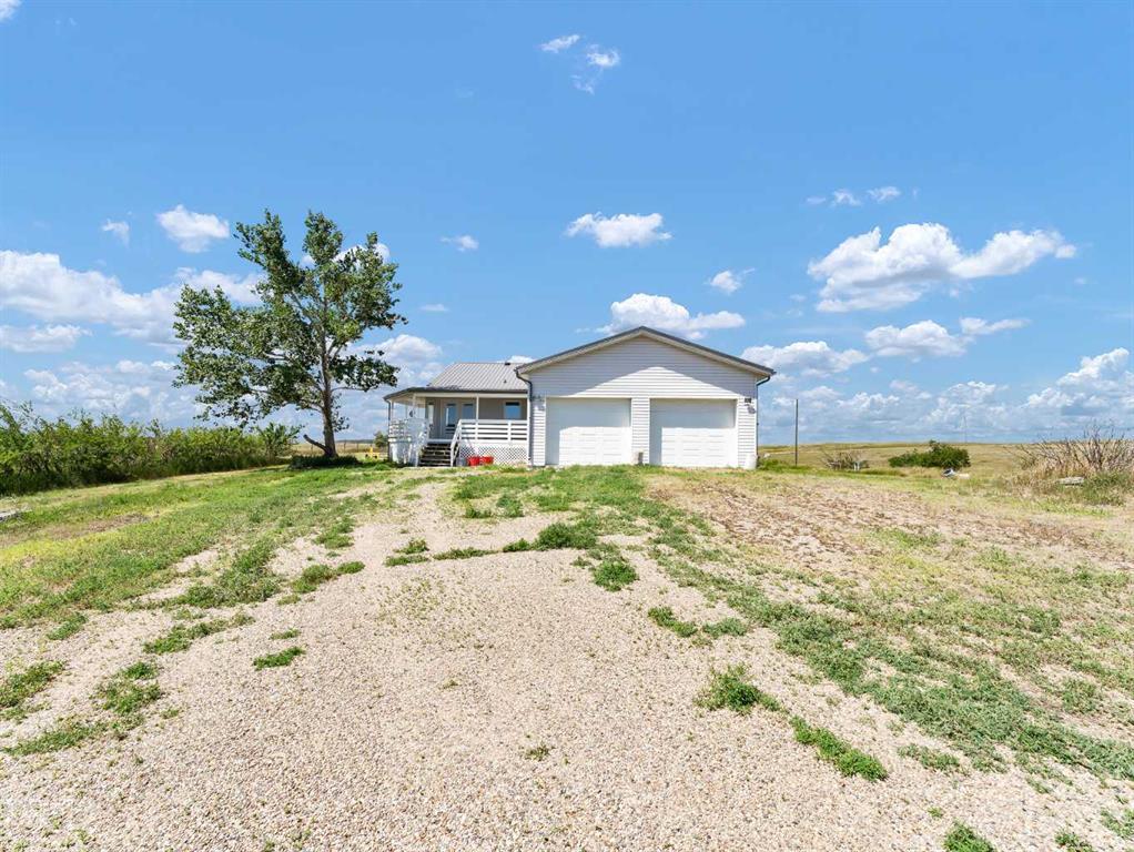 Enjoy country living with 159 acres of land with numerous outbuildings! Land has 2 dugouts, a horse barn with tack room, corrals and a 40'x60' shop. The main home was built in 2002 on the property and hosts 1,519 Sqft, 2 bedrooms, 2 bathrooms and a double attached garage. You are greeted by a wrap around porch that leads you inside where you will enjoy the vaulted ceilings, open floor plan and much more! Main floor features the large living room with wood burning fireplace, spacious dining room and laundry room. Kitchen has a center island with eat up breakfast bar, full appliance package & big pantry. This level is home to a 4pc bathroom plus 2 bedrooms, including the primary bedroom with walk-in closet and 4pc en-suite. The basement is unfinished and awaits your finishing touches. In addition to the main home there is also a 3 bedroom modular home w/large deck on the property that is perfect for extra revenue or the possibility for further family to live in. Paved road to the property. There is a 300ft well with potable water that was drilled in 2017 on this quarter. Surface lease income of $2,104.33/year. Great opportunity you do not want to miss out on! Call today for a private tour.