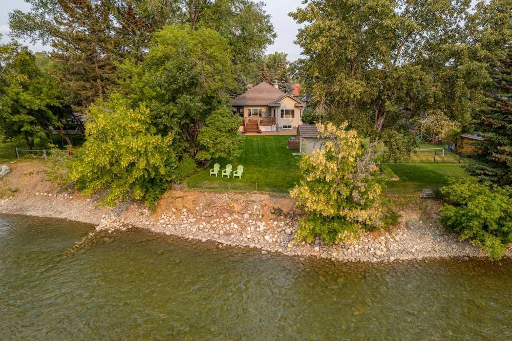 Extremely well maintained bungalow located on an expansive 50 ft wide x 267 ft deep river front lot on sought after Bow Crescent. This home, with a great layout and beautiful river views, is being sold by the original owners and has over 3200 sq ft of total living space.. Attention to detail can be appreciated throughout the house and yard. The bright, open concept main floor offers a kitchen with corner pantry and island with breakfast bar seating. The kitchen opens onto the breakfast nook and the living room which features a gas fireplace and large southeast facing windows with views of the beautiful yard and Bow River. The spacious formal dining room when you enter the home is great for dinner parties and family gatherings. 2 bedrooms on the main floor including the primary bedroom with several windows that face the yard and Bow River. The ensuite has two sinks, stand up shower, soaker air jetted tub and walk-in closet. The second full bathroom and laundry room complete the main floor. The updated basement offers 2 more bedrooms both with walk-in closets , 2 full bathrooms including one that has a steam shower, a large family room with fireplace and great storage spaces. Heated double garage plus a large driveway that allows for extra parking. Two furnaces, water softener, and continuous hot water. Premium steel shingles that will last for years to come. The huge yard is fenced on both sides, has a partially covered deck, brick patio, storage shed, and outdoor fireplace with built-in bbq. Private, quiet location with stunning river views that you will love to call home!
