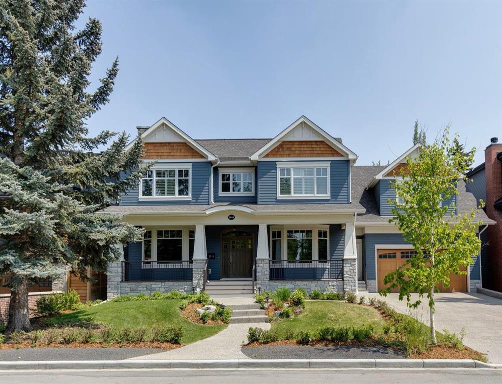 Fabulous 5 bedroom family home on 75 x 125 foot lot + on very quiet street in desirable East Elbow Park.This home was custom built in 2019 and has an excellent layout.Close to 4,700 square feet above grade + with unspoiled lower level with opportunity for custom development to suit your specific needs . A large covered front veranda welcomes you; enter to find a spacious foyer + central hall plan with a generous sized dining room + living room on either side. The comfy living room offers built-in bookshelves + wood burning fireplace( with gas lighter ) Lots of room in the dining room for dinner parties. The back of the home is devoted to relaxed family life with an open plan for everyone to gather at the kitchen island (with under-island lighting), breakfast nook + flow into the family room, also with fireplace + built in millwork. The kitchen is ideal with loads of cabinetry + counter space, beautiful high-end real quartzite, stainless steel appliances, double wall ovens, computer desk + butler pantry. Main floor mudroom offers ample storage+ many individual lockers. Built post flood, this property’s mechanical room is neatly tucked away on the main floor. Easy access to the huge backyard from the back of the house, which features a rear covered verandah leading to a large roman block patio with steps down to the expansive lower garden featuring garden lights and irrigation system. Fantastic views from the back of the home onto treed greenspace. Up the hardwood stairs to the second level there are five very large bedrooms two family baths (with in-floor heating) + the primary bedroom which is very spacious, has vaulted ceilings, gas fireplace + luxury ensuite bathroom with huge double vanity, soaker tub, shower, in floor heating + dressing room. A Bonus 474 square foot loft can be a great teenager hang out, craft room or gym. Hardwood flooring + natural stone on the top two levels. Further features include A/C, custom wood shutters on the bedroom/bathroom windows, in-floor heating in the garage and basement as well as bathrooms, reverse osmosis water filter, rapid hot water system, and water softener. Maintenance free hardy board exterior . Extra long driveway + oversized double attached garage with additional auto garage door at the rear , allowing vehicles to access the backyard. Walk to both Elbow Park Elementary + Rideau Park schools, the Glencoe, Elbow Park Community Center + tennis courts, outdoor skating rinks + playgrounds.Also close to the pathway system, 4th street + Britannia shops, restaurants + downtown.