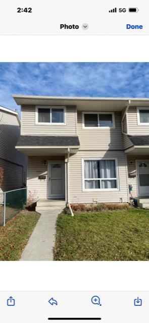 INVESTOR ALERT: This end-unit townhouse town house is a generous size with 3 bedrooms and a four-piece bathroom on the second floor. The main floor includes a large county kitchen and a living / dining room. Exit the main level to the fenced back yard and you will a nice sized yard where you can enjoy barbequing year-round. Go downstairs to the basement and you will find a family room, a new 3-piece bathroom and a laundry / utility room. There are 2 assigned parking stalls right in front of the unit. This unit has new vinyl windows/ new furnace/new hot water tank / new exterior doors. The condo corporation has replaced the fencing and the roof in the complex over the last few years. This unit is perfect for first time buyers or investors looking for a rental property. GREAT LOCATION! Just a short walk to: library, schools, grocery stores and the leisure center. Close to public transit, Stoney Trail, Peter Lougheed hospital and other amenities. AVAILABLE FOR QUICK POSSESSION. Easy to show / Vacant.