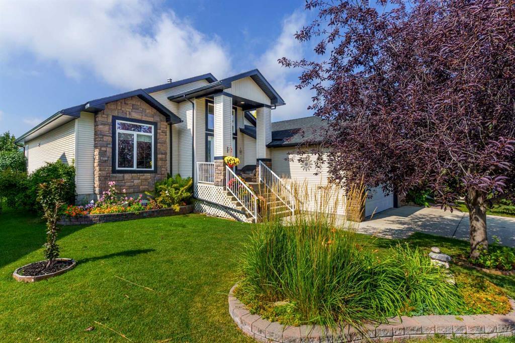 Nestled on a tranquil drive within the charming confines of a Northern subdivision in the Town of Olds, this executive residence exudes warmth and grandeur from the moment you set foot inside. With its impressive vaulted ceilings, recently updated kitchen cabinetry, and new vinyl flooring, this 1580 sq. ft. home seamlessly combines modern comforts with timeless appeal. The heart of this home boasts an inviting open concept, flowing effortlessly through the living room, dining area, and kitchen, making it perfect for both daily living and entertaining. The primary bedroom is a true sanctuary, offering a generous walk-in closet and a luxurious 5-piece ensuite complete with a Jacuzzi tub and walk-in shower. The main floor also features a convenient laundry area, an additional 4-pce bathroom, a versatile den/office space or formal dining room, as well as a well-appointed bedroom and direct access to a spacious double attached garage. The basement adds to the home's appeal with three more bedrooms, ensuring ample space for family and guests. A 4-pce bathroom and a generously-sized family room provide additional comfort and versatility. Step outside, and you'll find the yard is a true oasis, fully fenced and thoughtfully landscaped with vibrant perennials and meandering pathways. The property even backs onto a green space, ensuring privacy and a connection to nature. Completing this exceptional package is a private, low-maintenance deck, the perfect spot to unwind and savor the outdoors. Don't miss the opportunity to experience this remarkable home for yourself. Call today to arrange a private tour and discover the lifestyle this property has to offer. Your dream home awaits!