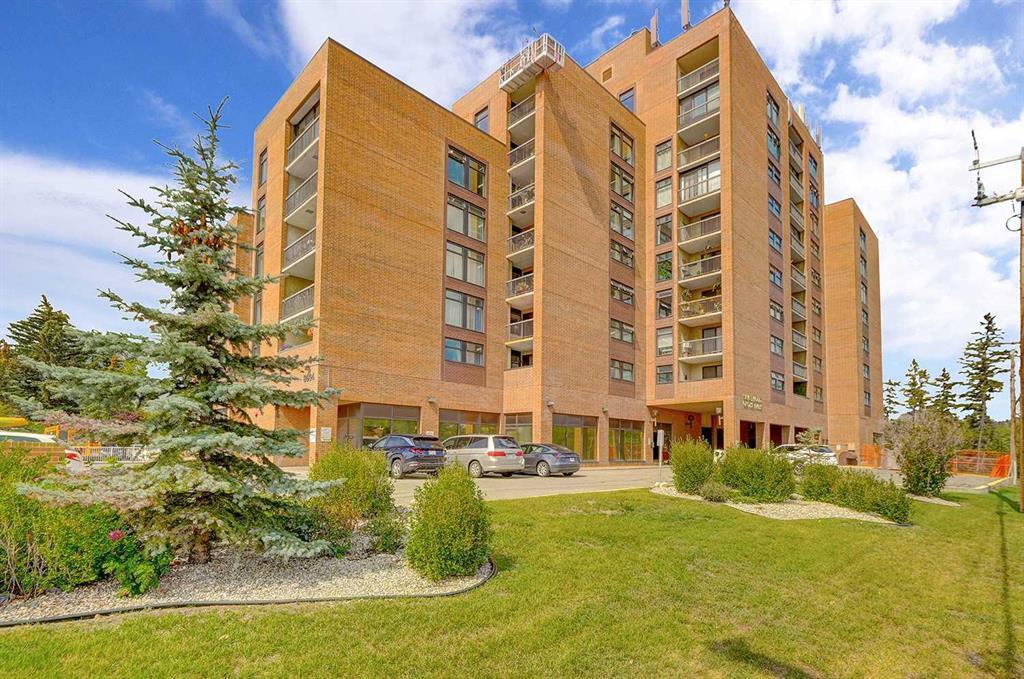Excellent spacious one bedroom unit with wonderful views! Your backyard is Bowness Park! Comes with one assigned secure underground parking stall. Other amenities include gym, recreation/social room, sauna, roof top patio, elevators and lounge. No cost commercial laundry room on every floor. Easy walking to park, river paths/trails, ideal for dog walking. Quick access to the Trans Canada Highway, Farmers Market, Canada Olympic Park and Shopping. BBQ all season long on this very usable balcony as it is mostly protected from elements. Seller recognizes that the unit needs new carpeting. Make this into your dream space. Great floor plan with bedroom, dining room, living room, storage area and 4pce. bathroom. Roughed in for A/C. Silverwood On The Park is an 18+adult building, well managed, concrete and brick construction. Awesome location in Bowness. Solid Building. Pet friendly complex but only one pet allowed and must be approved by Board and weigh maximum 20 lbs.at maturity. Come take a look! Call your favorite realtor to book a viewing.