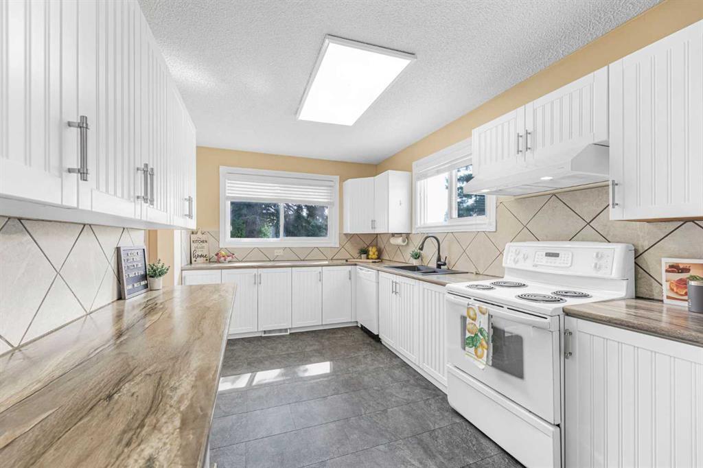 Welcome to the heart of Airdrie! This remarkable bungalow is ideally situated in a prime location and boasts an array of features and untapped potential. Nestled on an expansive lot, you’ll never have to worry about parking, thanks to the double heated tandem garage, a three-car driveway, and alley access. The side entry of the driveway ushers you into a generously spacious living room, with a captivating bay window that’s sure to steal your heart. Whether you gaze upon the backyard or cozy up to the wood-burning fireplace, this living space is a haven of comfort. Through the patio doors, you’ll step onto a sizeable back dura deck complete with a gazebo for your outdoor enjoyment. Inside, an updated and airy white kitchen awaits, complete with a breakfast bar, ample counter space, and a closet-turned pantry. The main floor comprises three bedrooms, including a sizable primary bedroom with a walk-through closet and a three-piece ensuite. You will also find a 4-piece main bathroom and the convenience of an upstairs laundry room that could be converted into a fourth bedroom if desired. The basement retains its original character and charm, featuring a spacious recreation room with a wet bar, two additional bedrooms (one does not meet egress standards), storage space, a cold room, and an extra room for all your storage needs plus a second laundry room. As if that is not enough, some additional features include, Wood siding, Roof replaced in 2014, newer High efficiency furnace, New hot water tank, updated triple pane windows on the main floor, and highly durable interlocking tile flooring in the kitchen and dining room! If you have children, you are steps away from the Tri Schools, the Farmers Market, Highway access and Main Street! This charming bungalow truly offers the best of both location and potential – an opportunity not to be missed.