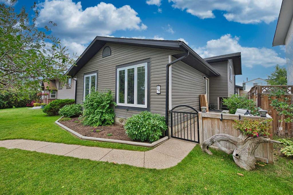 A creampuff split level nestled in the heart of Airdrie! This is the perfect downsizer home! Loaded with features, walk to downtown and shopping. Totally upgraded, the custom signpost brings you into 24 Aspen Crescent, up the stone aggregate walkway through mature trees, to a gated front court yard, step up to a side entry to a cozy living room warmed by a feature capstone walled fireplace.! The stylish vinyl plank floors are kid and pet proof, and easy clean! The open main floor is delightful with a modern kitchen featuring center island, breakfast bar, rich oak cabinets, Glass top stove, lots of counterspace, built in microwave hood fan, double sillgranite sink, with filtered water tap, plus a double door fridge with ice water! A vacuum kick plate makes it an easy clean kitchen. A garden door leads to a side deck with natural gas BBQ, a favorite spot to relax at the end of a summer day! The adjoining dining room is perfect for formal dinners and celebrations! The upper level features a secluded powder room, the 2nd bedroom and an amazing Primary bedroom! Wired for TV, lots of room for the King size furniture, adjoining is an open flex room, currently an office with a large wardrobe, A modern 4pce bath ensuite is perfect with a bidet and a huge walk in closet! The lower level features the TV room warmed by an oak mantled gas fireplace, the Oak built ins are perfect for the big screen TV and collectibles. A laundry room is well decked out as the perfect center for quilting and sewing. The 4pce bath is large and spacious. On the 4th level you find another large room currently a Gym, a 3rd bedroom is large and spacious, with a huge walk in closet.(current window does not meet egress standard.) The utility room is well organized with mid efficiency furnace, central air, humidifier, central vac, updated plumbing, water purification and water softener. The yard is privately fenced for lots of privacy, so sitting on your back deck is enjoyable, the hot tub is a perfect way to soak away the end of the day! The yard features solar lights, storage lockers, and a huge RV parking space, ideal for a camper or boat! The mechanics dream garage is oversized, heated and full of storage, with an over height door! The location is perfect, quiet street, yet close to downtown, easy living with all the features you need to enjoy each and everyday! See this home today! Before its gone!