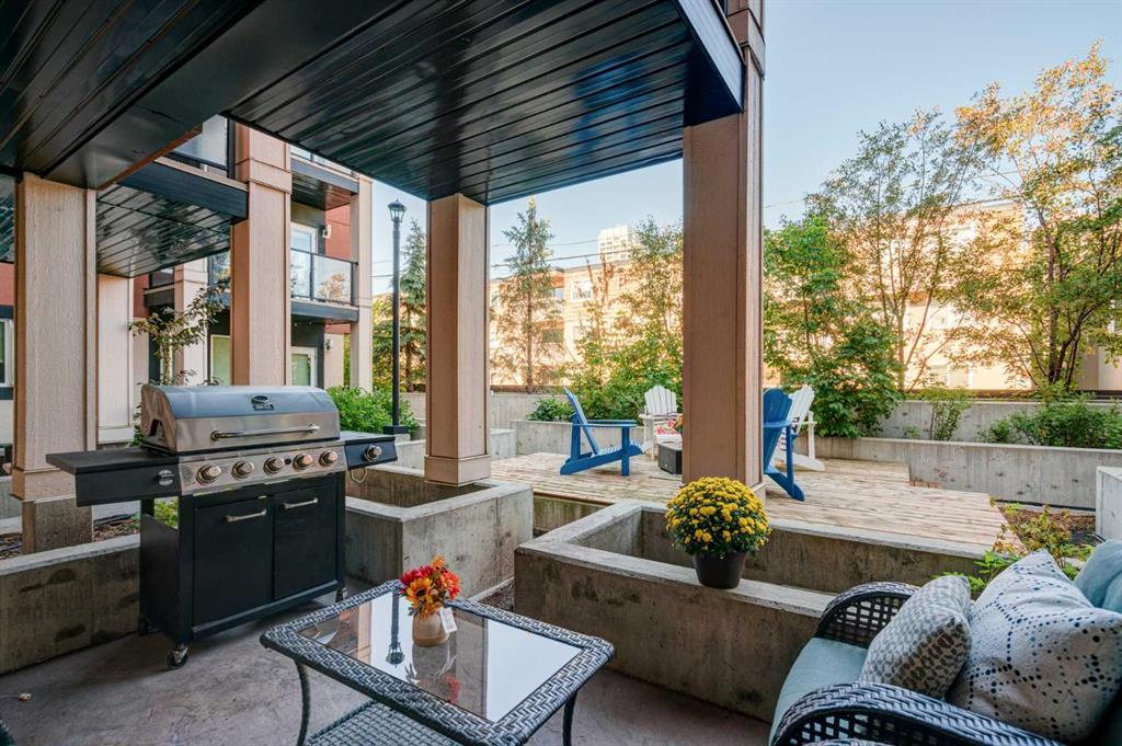 Stylish 1-Bed/1-Bath Apartment Steps from 17th Avenue! Welcome to urban living at its finest! This beautiful and modern 1-bedroom, 1-bathroom apartment is your ticket to the vibrant heart of 17th Avenue, one of the most sought-after neighbourhoods in the city. As you step inside, you'll immediately notice the contemporary open-concept design that maximizes space and natural light. The living area seamlessly flows into the well-appointed kitchen, featuring sleek quartz countertops and stainless steel appliances. It's a chef's dream and perfect for entertaining friends and family. The bedroom boasts a luxurious ensuite bathroom, complete with modern fixtures. You'll find convenience in every corner, including in-unit laundry facilities, making daily chores a breeze. This unit comes with a valuable perk - titled underground parking. No more searching for street parking on cold winter nights. Plus, there's a separate storage locker to keep your seasonal gear and belongings organized. One of the standout features of this apartment is the expansive private patio, one of the largest in the building. It's your own outdoor oasis, perfect for morning coffee, evening cocktails, or simply soaking up the sun. The patio opens onto a tranquil private courtyard, creating a peaceful retreat in the heart of the city. Location is everything, and this building doesn't disappoint. You're just steps away from some of the city's finest restaurants, coffee shops, boutiques, and entertainment options. Don't miss this opportunity to live in style and convenience in one of the most coveted neighborhoods in town. Schedule a showing today and make this modern gem your new urban sanctuary.