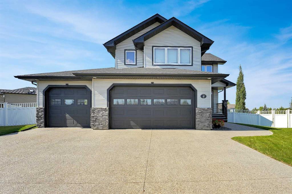 The perfect home for a family that needs SPACE! Exceptional Two story with triple heated garage backing onto greenspace with on a 11,129 sq foot lot! Tucked into the peaceful close in Lakeway Landing this home has it all. With 4 bedrooms, 4 baths and a walk out basement, this would be ideal for a mother-in-law suite. This home shows pride in ownership throughout The large welcoming foyer welcomes you towards the open concept heart of the main floor. The combined kitchen/dining/living area makes the most of the space and is ideal for entertaining or simply spending time together as a family. The kitchen has ample counterspace and cupboard, large island and walk in pantry with a convenient tv above. The fridge is newer with two ice maker and stove was purchased a year and a half ago. The living room is cozy with the gas fireplace, and the dining area leads to the upper balcony over looks the scenic greenspace and walking paths. The laundry is on the main floor with a new counter above the washer & dryer. Upstairs is the oversized bonus room with built in speakers and vaulted ceilings. All the bedrooms are sizeable, one is jack and jilled to the full bathroom. The primary room has a walk-in closet and 5-piece bright ensuite with a jetted tub and his and her sinks. The lower level has a full bath with large storage closet, family room, bedroom and a wet bar. There are many possibilities with this basement. More extras are A/C, irrigation system, new washer & dryer, in floor heat in the garage and basement, new front steps, new garage door openers, new water softener. Garage lovers this is the space for you! The sellers have built a new large storage closet around a full fridge and recently constructed shelving throughout. This massive yard has endless possibilities and access to the paved walking trails and natural setting. 3 Business day clause