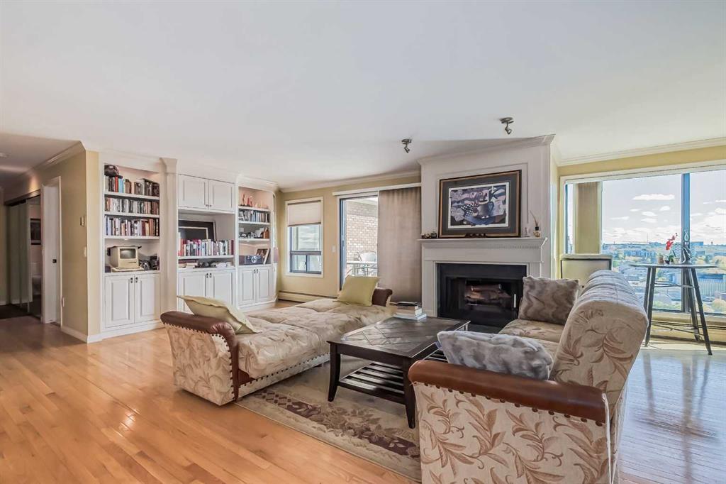 Experience the epitome of urban luxury in this 1,500 square foot penthouse nestled within the heart of downtown Calgary's Holly Point. Fully updated in 2019, this meticulously crafted 2-bedroom, 2-bathroom residence offers an exceptional lifestyle with breathtaking views of downtown and the serene Bow River. Upon entering, you'll be greeted by an open and inviting living space, bathed in natural light from floor-to-ceiling windows. Revel in the seamless fusion of contemporary design and comfort, from the modern kitchen with its top-of-the-line appliances to the spacious dining area, perfect for hosting gatherings. Retreat to the master suite with its own private balcony access, where you can unwind while gazing at the city lights. The second bedroom provides versatility to suit your needs. Included is a single assigned underground/heated parking space, ensuring convenience and comfort year-round. Residents of Holly Point enjoy access to amenities such as a fitness and pool rooms. Embrace the vibrant downtown lifestyle with easy access to cultural attractions, dining, shopping, and entertainment. This penthouse is an extraordinary opportunity for those seeking a blend of sophistication and convenience in the heart of Calgary.
