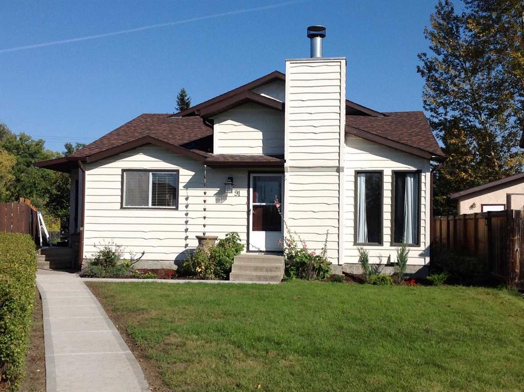 " GREAT DEAL !! OVERLOOK THE GOLF COURSE !!! " This 4 bedroom/ 3 bathroom home has an unobstructed view of the golf course from the back deck and offers a private back yard and makes an excellent and affordable choice !! This cute home has newer shingles, newer engineered hardwood, newer light fixtures, a new front concrete walkway, and is freshly painted . This 1980 home offers a wood fireplace in the main floor living room and also has an enormous 31' x 12'10" family room on the upper floor with access to the large back deck overlooking the golf course. The large master bedroom has a 3 piece ensuite and patio doors leading onto the same back deck. The family room and master are heated with in-floor heat. The uniqueness of this floor plan makes for a great rental property and excellent choice for a first time buyer. All appliances are staying , lots of parking with back alley access and this home has tons of storage .