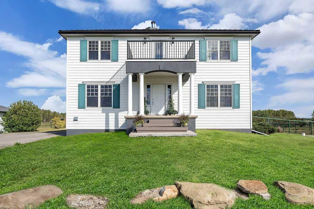 Seize this one-of-a-kind opportunity! Discerning buyers will recognize the unique features of this quality built home, on a generous 6 acre parcel, located on a quiet dead end road, with unobstructed mountain views, surrounded by nature. This extraordinary property is conveniently located minutes away from Calgary, Okotoks and Strathcona Tweedsmuir School. This custom ICF built home, features a resilient Gem rubber roof, clad in Hardie Board siding and maintenance free decks. There is a Masonry Heater with Lifebreath heat recovery exchange unit (one wood burn/day) as well as a solar powered hot water system for your comfort. With 2,516 square feet of living space, this two-storey gem is finished with distressed oak hardwood and tile floor throughout, main floor features an inviting front entry, a sunlit formal living and dining room, a main floor primary bedroom with access to a vanity/sink area, and a 3-piece bath. Additionally, it includes convenient main floor laundry with a convenient second floor laundry chute. Step into the open concept kitchen and great room, complete with vaulted ceilings, which create an airy and inviting atmosphere. The kitchen provides solid maple wood cabinetry, a center island with a breakfast bar, and ample storage for all your culinary needs. Cooking enthusiasts will appreciate the wood cook stove, perfect for roasting delicious meals while showcasing an eighteen foot, floor to ceiling, stone backdrop. Entertaining is a breeze with the open layout connecting the kitchen and great room to a charming closed-in porch patio with a rustic country feel. For outdoor enthusiasts, there's a second lower deck, ideal for barbecuing and enjoying the views of the iconic foothills and natural ravines. Upstairs, discover three spacious bedrooms, a four-piece bath, and a library space with access to the upper balconies, both offering outstanding views. The lower level features a fifth bedroom, a half bath, and ample space for a rec room. The 6-acre parcel is fully cross fenced with two horse shelters. A large vegetable garden area, a double oversized detached garage, and more. A total of four decks all offer stunning views. Tired of the rising costs of Utility bills? Don't hesitate, start enjoying the serenity of country living in this low maintenance, high energy efficient family home today!