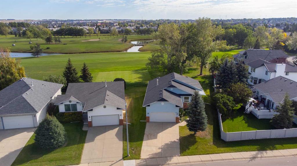 Welcome to this unique +50 neighbourhood of Woodside. Directly across the street from the Woodside Seniors Club, and down the street from the Woodside Golf Course, and their newly renovated restaurant. Great curb appeal for this bungalow, with low maintenance landscaping and underground sprinklers to make yard work easier. No maintenance front deck, with Regal railing. Open concept main floor. Tons of good sized windows in this living room, with view of the greenspace of the golf course. Formal dining room, with double windows. Eat-in, massive kitchen with room for a breakfast table, to enjoy the morning sun, plus the view. Out the back door to the covered 3 season room with solid windows, and sliding door to the bbq deck. Master retreat on the main floor has really good sized corner windows, plus room for all your furniture and has a large closet. Ensuite is spacious and has a walk in shower. Second bedroom is a good size, with a large window. Main bathroom has good sized linen closet in it. Laundry is located in the hall by the bedrooms. Downstairs you will find a good sized rec room, and the third bedroom. An abundance of storage is also located in this lower level. The windows on the main floor have all been replaced to triple pane except the windows in the dining room, as they are in great shape. As per land title restriction, no fences are allowed however, a dog run is a possibility for your little pets!