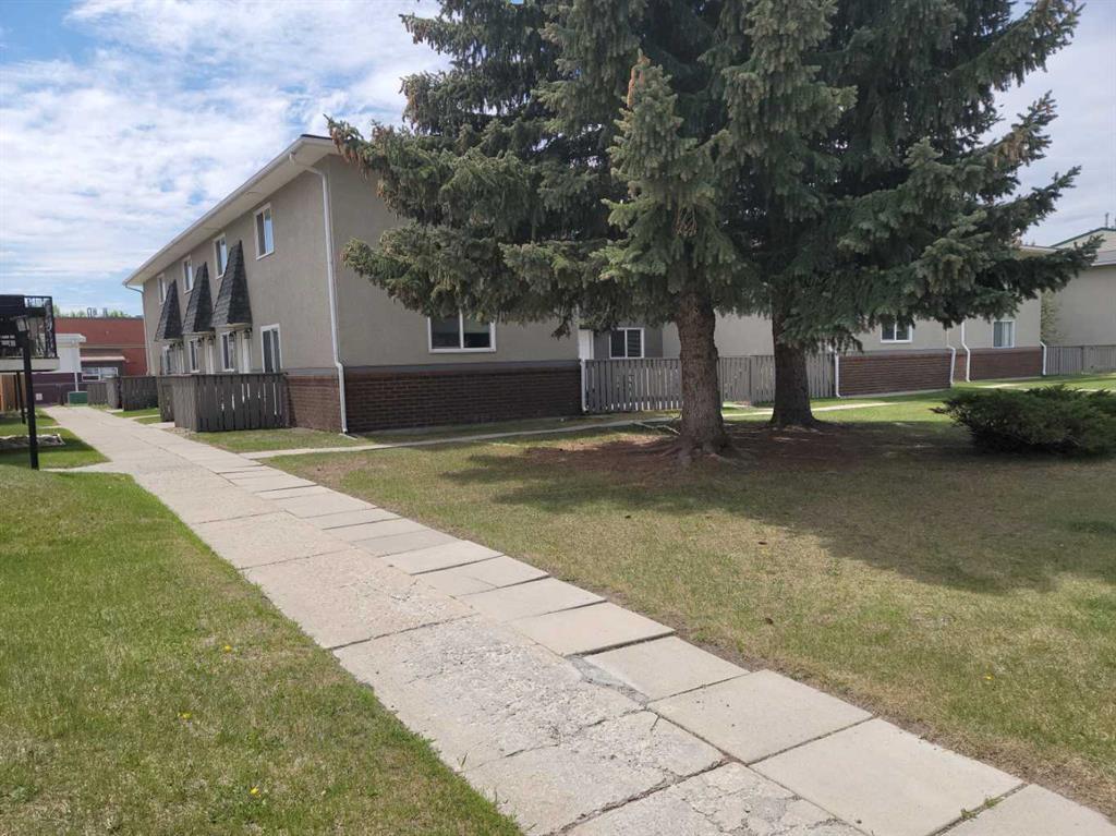 eight suite wood frame apartment building with stucco and brick exterior, 4 x 1 bdrm units at 635 sf, 2 x 2 bdrm two storey units at 1065 sf, 1 x 3 bdrm two storey unit at 1205 sf, 1 x 4 bdrm two storey unit at 1385 sf, lower units have patios and two fenced yards, windows replaced 4 years ago', each 2bd, 3bd and 4bd unit features laundry machines as well as a laundry room with two coin operated washers and three coin operated dryers, there are eight paved parking stalls at the rear with plug ins, large lot with mature landscaping with numerous trees and shrubs, small town location of Strathmore 52 km from downtown Calgary, proposed De Havilland Field aircraft manufacturing facility to be located 6 miles west of Strathmore providing up to 1500 jobs, a total of four buildings available in one block for a total of 28 suites.... all listed MLS
