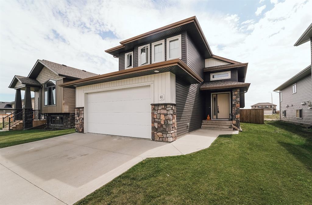 SO MUCH TO LOVE IN MACKENZIE RANCH! This beautiful bilevel has a great layout for your family! A huge vaulted entry leads you into this pretty home. The unique main floor layout gives you a bright open entertaining & gathering space with the bedrooms tucked down the hallway. The VAULTED kitchen is well laid out with a CUSTOM COFFEE BAR, stainless steel appliances, a large corner pantry, a huge centre island with seating space, south facing windows AND a good sized nook for your table; family time begins HERE. There is a COVERED deck directly off the kitchen with stairs to the sunny backyard. The pretty living room has lovely transom windows, custom built shelves and a cozy gas fireplace. You will spend some cozy nights here. There are two bedrooms (one currently being used as an office with a custom raw edge built-in desk) and a 4 piece bath. The master suite is quiet and private; a few steps from the main and over the garage. This oasis includes a spacious bedroom, walk in closet and 4 piece bath. The basement is fully finished; Bright and open with huge windows. The spacious family room anchors the space with ample space and plush carpet. There are 2 more good sized bedrooms, another 4 piece bath and a laundry/ mechanical room. This home is finished in warm neutrals (with the odd pop of colour), rustic laminate & lino and cozy carpet. The yard faces south and features a gated section for kids or pups, a firepit (perfect for get togethers and roasting marshmallows!), room for your RV and Hot Tub area. Fun AND functional. Situated in a great neighbourhood, this home has so much to offer!