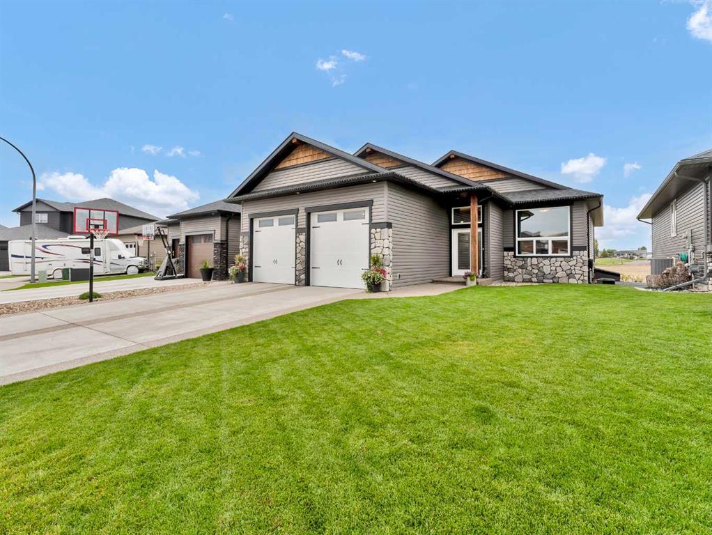 Prepare to fall in love with this gorgeous home located in a perfect family friendly community. Redcliff offers a quiet lifestyle with all the amenities and services you require, while still being just minutes away from the city. Custom-built by Dwelling Places, this 5-bedroom, 3-bathroom executive style walkout bungalow just over 1450 sq ft, is situated only steps away from the picturesque Riverview Golf Course. Come inside and enjoy a large entry with ample closet space and a cozy handcrafted bench for your guests. Continuing onto the main you will find an open concept kitchen/dining/living area filled with tons of natural light, high ceilings, and crisp white finishes giving this home a spacious, airy feel. If you love to cook and entertain, this kitchen is for you with its’ oversized island, stainless appliances including gas stove and double oven, corner pantry, built in hutch with wine rack and quartz countertops. The first two bedrooms can be found on this level including an amazing primary retreat complete with walk-in closet. A trendy wood barn door separates your bedroom from the bright 5-piece ensuite, where you will enjoy a beautiful walk-in glass shower and soaker tub that will give you all the spa like vibes. Upscale modern finishes can be found throughout this home including ceramic tile, hardwood flooring, coordinating backsplash and more. The lower-level walkout has 3 additional bedrooms (2 with walk in closets), a 4-piece bath, laundry, storage, and a sizeable family room where you can relax and watch movies or just hang out with friends and family. The cherry on top for this property is the opportunity to enjoy some of the best sunsets from either of your covered deck spaces, with no neighbours behind. This home is finished off nicely with extras such as a fully landscaped fenced yard with underground sprinklers, side shed for outdoor storage, tankless hot water, and a double attached, heated garage (24 x 26). New home warranty is still available for this property. This outstanding home is waiting for you! Contact your realtor today to book a private viewing. You won’t be disappointed.