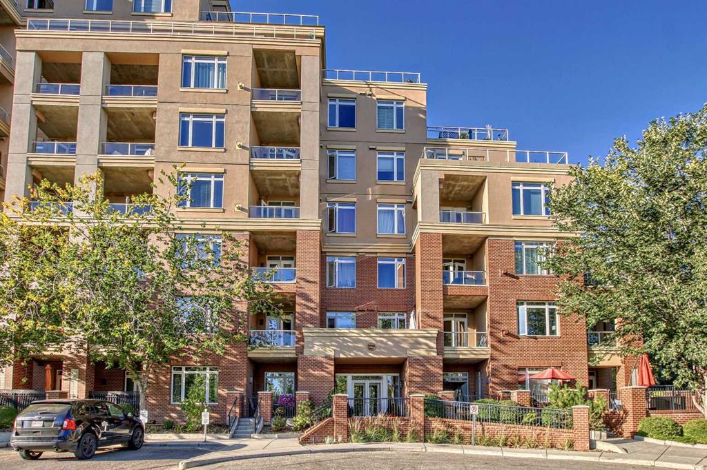 Bright and Spacious 925 sq. ft. second floor corner unit in quiet concrete structure on Shaganappi Golf Course. This one bedroom + den, one bathroom suite features a modern open concept with oversized rooms and 10 foot ceilings in a secure and quiet concrete structure. Northwest orientation provides stunning garden views and cool temperatures in the summer. Unit amenities include custom-fitted blinds, gas fireplace, stainless steel appliances, in-suite laundry, walk-in closet, large den, pantry, and walk-through bathroom with large soaker bathtub. Complex amenities include a titled underground heated parking stall with access to car-wash port, free membership to the Copper Club Gym, rental guest suite, and a large meeting/banquet room. Situated in the inner-city community of Spruce Cliff, you will enjoy easy access to: Westbrook LRT station (800m), Westbrook Shopping Centre (1km), Edworthy Park, Douglas Fir Trailhead, Nicholls Public Library, Schools, and Shaganappi Golf Course (on-site) including front door access to beautiful cross-country skiing trails. This unit also includes a large storage locker secured in the underground parkade available for use.
