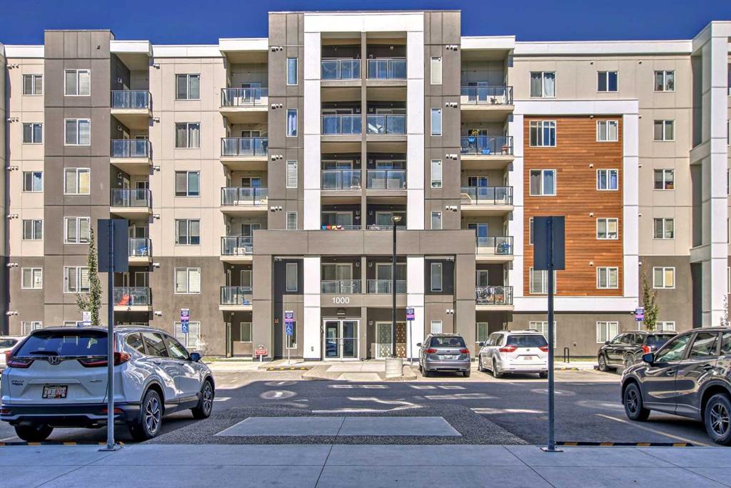 Welcome to this STUNNING 2 BEDROOM, 2 BATH, PLUS DEN, CORNER UNIT WITH AMAZING MOUNTAIN VIEWS, LOW CONDO FEES & UNDERGOUND PARKING! Boasting over 900 SF of well designed, open concept living with a beautiful south-east balcony with incredible views. This bright & open unit features large windows for plenty of natural light & quality upgrades including quality laminate flooring. The chef in the family will love the upgraded kitchen offering granite counter tops, dark cabinetry, stainless steel appliances & a huge center island with extended seating. The adjacent dining area will accommodate a large table for your family meals or a perfect spot for games night. The living room has plenty of space for your furniture plus patio doors to your beautiful balcony with exquisite views. The primary bedroom offers a walk-through closet & full 4 pce ensuite. 2nd bedroom has access to another 4 pce bathroom. The den is a perfect office space, playroom or extra storage. Rounding out this impressive unit is a convenient laundry area. Included is one titled parking stall in the heated, underground parking area. The low condo fees of $344.91 covers all utilities except power & cable. The location is key with onsite gym & party room, with daycare on the main level. Close to all amenities & transit with the future LRT & shopping center a few steps away. Quick possession after Oct 8th