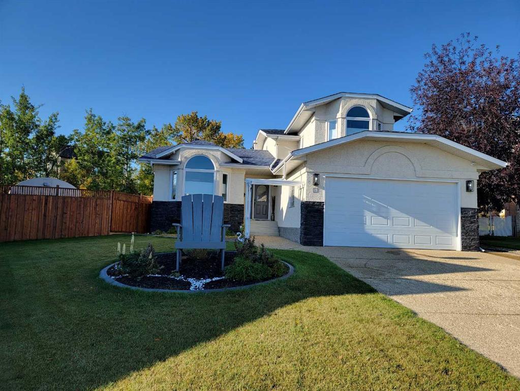 TWO HEATED GARAGES! This beautiful 4 bedroom/4 bath home is loaded with upgrades and unique features! Upgrades include: new windows, high-end blinds, A/C, toilets, slate tile, sinks, reverse osmosis system, fresh paint, shingles, security system, stonework to the exterior of the home and new fence. The open floor plan and vaulted ceilings provide plenty of natural light. Recently renovated kitchen with a massive 5x11 island/eating bar, tons of cupboards, stainless steel appliances and quartz countertops. A dining room capable of hosting large gatherings when entertaining and an optional breakfast nook for the less formal meals. Recently installed wood burning stove with a stone backdrop in the living room. A bedroom, bathroom and laundry/mud room complete the main level. On the top level you will find 2 bedrooms that BOTH have an ensuite and walk-in closet. The primary bedroom is larger in every way; walk-in closet, raised ensuite with a soaker tub, built-in make-up desk and shower. The second bedroom also features a 4-piece ensuite and smaller walk-in closet. The basement level has a family room with built-in shelving, a huge bedroom, 3-piece bathroom and a massive storage space(29x17) about 5 ½ feet high. The yard has been professionally landscaped with continuous curbing along the stone walking path (front to back) and a pond with a fountain. Along with the new fence is rolling RV gates for easier parking of your boat or RV. The 2-tiered deck (recently painted) includes 2 natural gas hookups. And to finish the backyard is the detached garage, with a 10 ft. garage door, heating, and a floor drain. The back lane is paved and lined with mature trees for privacy. This home is located on a quiet close.