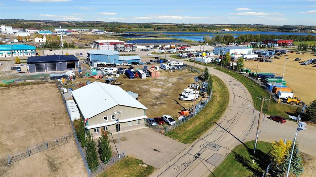 Business owners ! Investors ! here's a premium offer in Beju Industrial Park, Sylvan Lake. Standalone building on a 1.34-acre corner lot, just off Hwy 20. The site offers ample parking and storage with its expansive lot. The building itself spans 4,000 sq ft, equipped with three 16’ x 16’ overhead doors. Additionally, there's 1,000 sq ft of office space and another 1,000 sqft mezzanine, featuring offices, a lunchroom, and facilities. Security is top-notch with a fenced yard and dual entrances. Seize this streamlined, high-potential asset in a bustling industrial hub. Secure your business and investment future in Beju Industrial Park.
