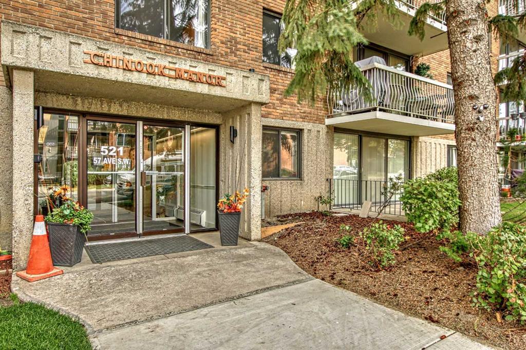 This 1 bed/1 bath unit has been updated with vinyl plank floors throughout and lighting fixtures. The good sized kitchen has white cabinets with ample counter space and pantry. The living room showcases floor to ceiling patio doors, which open onto the patio facing 57 Ave. Rounding out the unit is a four piece bathroom with vanity storage and front closet. Chinook Manor is a 40+ age restricted building and does not permit pets. Amenities include: elevator, secured underground parking, secured entry doors, billiards room, fitness room, game/recreation room, workshop, meeting room, common area laundry room, and storage units. This ideal inner city location is a short walk to Chinook Centre, with easy access to MacLeod Trail, Elbow Trail, Glenmore Trail, the LRT/transit and Calgary Golf & Country Club.