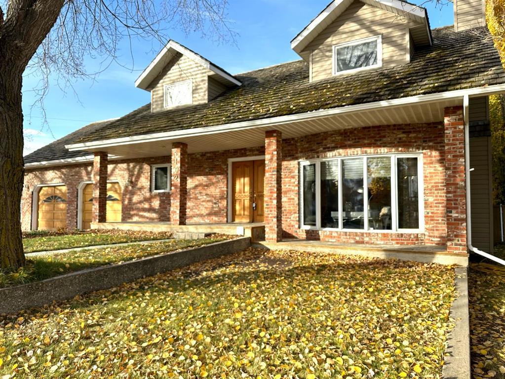 Has there ever been a home that you pass on your way to work or school and you think, if that ever comes for sale, I'm going to buy it! This is one of those properties. A classic brick cape cod with second storey dormers, located on one of Ponoka's lovely tree lined streets and walking distance to EVERYTHING! Undeniable curb appeal calls you home and continues on like a warm hug throughout this timeless property. Wide and welcoming, solid wood front doors usher into a foyer with grand staircase, sunken living room with bay window, wood burning fireplace and the room's generous footprint. The dining room shares the view through to the bay window, as well as sliding doors to the west facing deck. A warm oak peninsula kitchen offers great storage with pantry wall in addition to the cabinetry. Quick access from the garage with the groceries is sure to be appreciated in this very family friendly home. A breakfast nook offers a place for morning coffee or afternoon homework, that is if you can resist the pull of the 4 season sunroom. A wood clad ceiling gives an organic feeling to this room just begging for a green thumb to let their dreams take root. A garden door leads to the west deck and out to the expansive, secluded yard. No neighbours behind, lane access for RV parking and a greenspace behind, make this a dream house on a dream lot. The back lane is not a through lane so very little traffic. Four bedrooms throughout the home give everyone the space they need. The primary bedroom is HUGE. Not only will it fit the largest bedroom suite and king size bed, you may find you have room for additional pieces like comfy chairs and table for a sitting area, or perhaps a desk or computer area. Complete with a 3 pce ensuite, an entire wall of closet space and both east and west facing windows make for a bright happy owner retreat. Hardwood flooring in the primary bedroom the skylit hall, lead to another generously sized bedroom, large bathroom and upper floor laundry room. The completely finished basement offers a rec room, bedroom, full bathroom and 2 complete storage areas, one with built in shelving for organization. Some would say we have saved the best feature for last, the garage. With room for 3 vehicles, or any hobby that you could dream of, this space will comfortable year round with heat, ventilation and amenities like 200 amp service. This home sees to complete comfort inside as well with a 2 zone furnace with electrostatic filter and central air conditioning. Sellers have prepared the home for the lucky new owners with fresh paint throughout, new flooring in the living room & new light fixtures as well. A turn key property that anyone would be proud to call home.