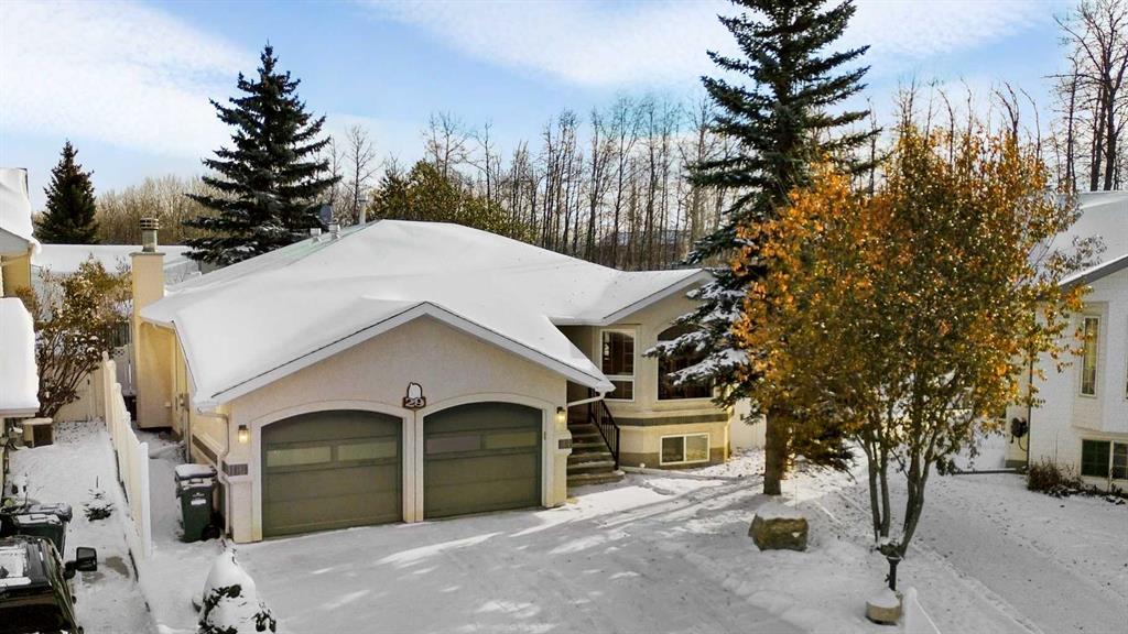 Welcome to a timeless custom-built home with two attached garages located in the picturesque town of Sylvan Lake. Front attached double and a rear attached single (very rare to have an additional attached garage), with the back one being heated. Spanning over 1600 sq feet on the main floor, this executive bungalow offers a unique layout; ideal for empty nesters or those with teenagers. Curved staircase, and a 3-sided gas fireplace elevate the main living area. Hardwood floors throughout the dining, kitchen, and hallways. The kitchen is large and you will appreciate new stainless steel appliances, new garburator, stone countertops, drinking water faucet, corner pantry, and a great view out to your backyard. The primary bedroom is luxurious and one of a kind; measuring at 15'8"x22'11", with patio doors to your Southeast facing deck. 5pc ensuite with jet tub, separate shower, double sinks, and more large windows allowing for so much natural light that will really make you feel like you are on vacation, at home. Large walk-in closet will be sure to please. Main floor laundry and sink area right off the front attached garage, allowing for convenience when coming in from tinkering on engines or hobbies alike. From there, enjoy your "flex" room/den/man cave, complete with a wet bar, wood burning fireplace, and direct access to the single garage. Enjoying outside is a breeze in the very private yard, where it has been designed with an interlocking brick firepit area, mature trees, large deck, shed, and vinyl fencing. Heading down to the basement, the open family room offers a third fireplace which is gas, framed with real rundle stone & oak mantle. Talk about quality! There are two bedrooms side by side that share the 4pc bathroom, where awaits a beautiful clawfoot tub. The basement also offers up a large storage area and a wine/beer making or hobby room. Basement has hot water in-floor heat and the home in equipped with A/C. Many rooms have fresh paint within the last couple years as well. If you are after a home that offers comfort, sophistication, and a plethora of details you just don't see in your average home, this one could be the one for you.