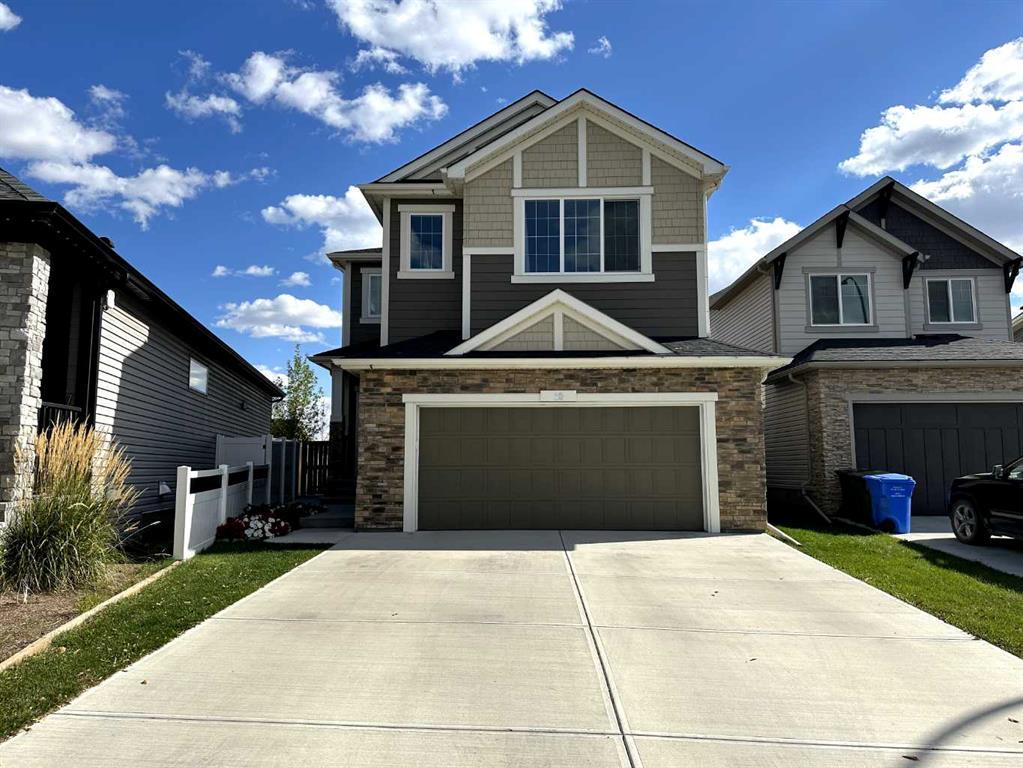 Incredible move-in ready 4 bedroom up home with all the current finishings and style that you could ever dream of! Pride of ownership is evident in this home and has been lovingly taken care of both inside and out. The driveway is extra long on this big lot and may be able to fit 4 cars on it when your guests come over to hang out. Upon entry you will discover neutral decor and stylish yet durable vinyl plank floors that carry you throughout the entire main floor. There is an open den area in the front of the home that will accommodate office furniture with ease. There is a two piece powder room on the main floor. The mudroom has a bench and hooks with additional shelves to tidily store items. Take the walk through pantry into the white kitchen where you’ll see 9 ft ceilings, stainless steel appliances, a breakfast bar, stovetop with hood fan, lots of cupboards, a large center island, and stylish tile backsplash. The kitchen nook is open onto the kitchen allowing for easy “oven to table” meals. Take the kitchen nook sliding doors outside to find a big pie East facing fenced backyard with maintenance free deck, concrete stamped pad and dog run on the side. Back inside the huge family rooms opens up onto the kitchen and enjoys sunlight from the large window and comfort from the fireplace. Go upstairs to find a carpeted area with upgraded underlay, 4 bedrooms each with walk in closets including a primary bedroom with ensuite which includes a separating door, soaker tub, double sinks, private toilet area, and 10 mil glass showered door retreat. There is an excellent sized bonus room situated in the middle of the upstairs which has ample space to enjoy time together in a cozy setting. Enjoy the convenience of having a laundry room upstairs. The downstairs has been drywalled, electrics done (with permits) and has a r/o bathroom. This home has additional features including a big driveway, Gemstone Lights, a good sized garage with epoxy finish on the floor, A/C & upgraded H2O tank. Enjoy living close to the hospital, golf courses, stores, and major roadways all the while being in an inviting community.