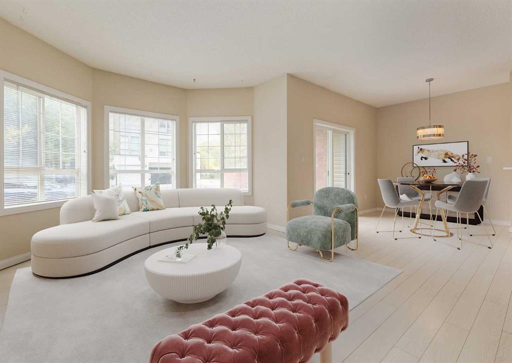 WEST facing stylish home with 2 bedrooms, 2 full bathrooms, and 2 underground parking stalls in the heart of Bridgeland! Open concept living with vinyl plank flooring, plenty of space to cook, dine, work, and relax. Large primary bedroom with ensuite and his and her double closets. The reasonable condo fees include in-floor heating, water, sewer, professional management, exterior maintenance, insurance, and reserve fund contributions. Pet friendly complex with board approval, pet owners will enjoy living on the main floor with a west facing patio on a private cul-de-sac. Other features include in-suite laundry, storage locker, secured bike storage, and new FOB entry system. Central location steps to amenities, groceries, cafes, restaurants, bars, C-Train, schools, and parks. This home is completely move in ready or add this affordable unit to your rental portfolio!