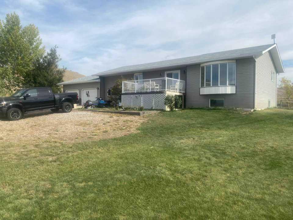 Country Living less than 5 minutes out of the city. 1628 sq Ft Bungalow home with 4 bedrooms, 3 baths and double attached garage on 78 acres of grassland. This acreage has beautiful rolling land with valleys for windbreak and a seasonal flowing creek. There are two water wells providing ample water supply for livestock and house with underground sprinklers. Full appliance package, central air, central vac and lots of updates done. Small corral setup with water bowl, perfect to run a few cattle or horses. Come check it out before it is gone!
