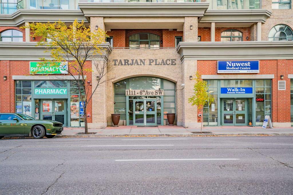 Welcome to this open-concept 10th floor condo at Tarjan Place in downtown Calgary’s West End. This pristine 1 bed/1 bath/flex room unit has it all. The kitchen boasts plenty of cabinetry and counterspace and the living room and balcony (with gas outlet) have spectacular views north to the Bow River and the 10th St bridge. The bedroom has a large closet with the 4pc bath and in-suite laundry right next door. The flooring was updated in 2021 with new carpet and durable high end laminate wood flooring. Depending on your needs, the flex room could serve as a dining room or office, or perhaps a combination of both – it’s a generous size! The building offers a large fully equipped fitness area, bike storage, daytime lobby concierge service Monday thru Saturday and evening security patrol 7 days/week. The main floor retail space has a variety of retail services. Condo fees include heat/gas/electricity, plus it's a pet-friendly building (dogs max 25lbs with board approval). The Bow River pathway is just a block away, an effortless walk or bike ride to Eau Claire Market, Prince’s Island Park as well as the trendy East Village neighbourhood, or head across the 10th St bridge to Kensington. The Downtown/West Kerby LRT Station stop is right outside the back door of the building and is the first stop for the Calgary Transit Free Fare Zone to City Hall. Whether you are a first-time homebuyer or an investor, this is a terrific opportunity to live downtown. Quick possession is possible, call your favourite REALTOR® today to view! Don't forget to check out the 3D virtual tour.