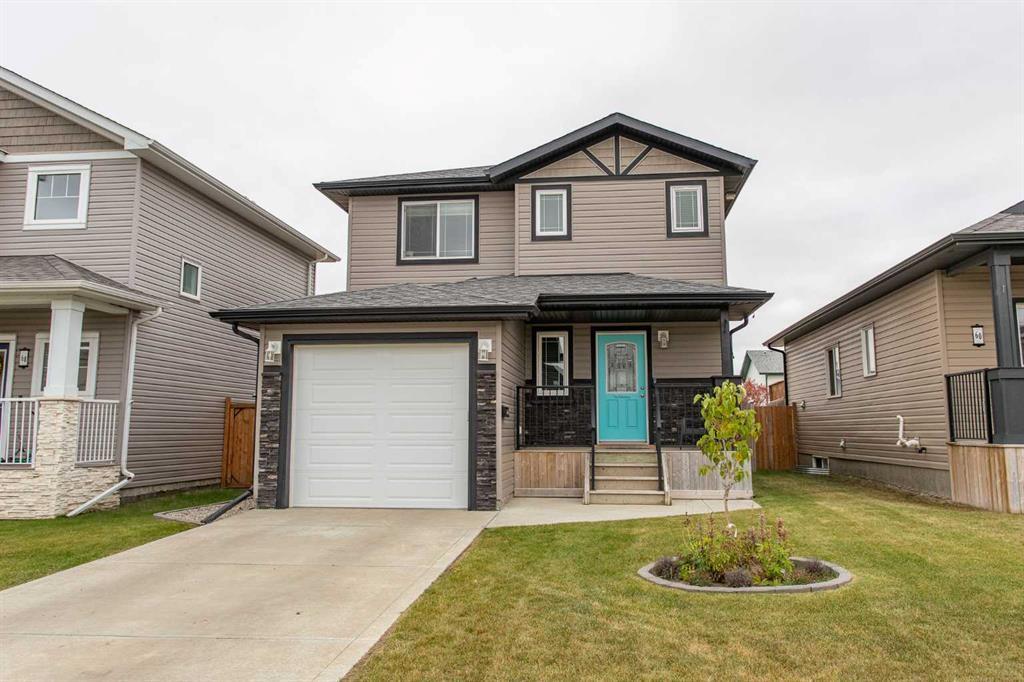 A great family home! This 2 story with an open concept living area on the main floor provides a welcoming space for everyone. The larger foyer leads you in to the living room with an electric fireplace and lots of large windows that offer natural light. The kitchen has lots of counter space, granite counter tops, a large pantry, and a center island with bar seating. Access from the dining room leads to the two tiered deck with gas hook-up for the BBQ. Upstairs you'll find the master bedroom with walk-in-closet and spacious 4 piece ensuite. Two good sized bedrooms, laundry room, and 4 piece bath complete the upstairs. The basement is fully developed with a fourth bedroom, large family/games room, and yet another 4 piece bath. One of the few properties on the street that has a front drive & attached single car garage that is drywalled & insulated. Summers will be enjoyed with air conditioning that was installed one year ago. The backyard is fully fenced and ready for your enjoyment.